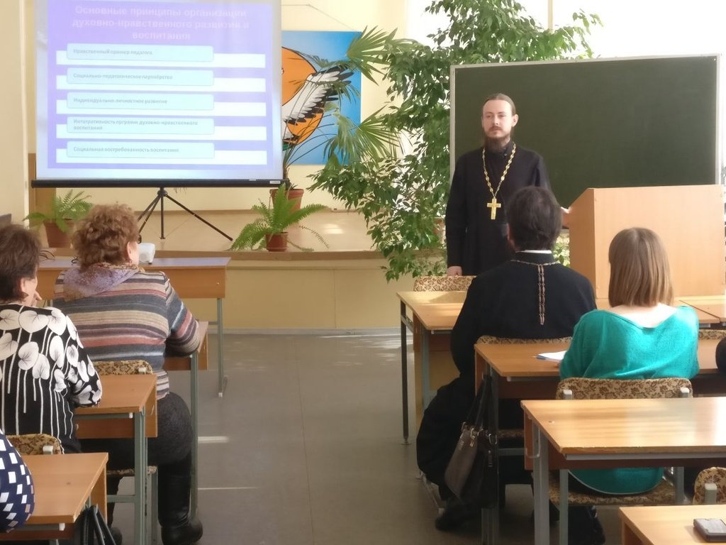22 марта в методическом центре города Шатура состоялась встреча преподавателей предметов духовного цикла с благочинным Шатурского церковного округа священником Владиславом Решетниковым. На встрече присутствовали директор методического центра Галина Белова, ответственный за религиозное образование и катехизацию в благочинии священник Евгений Шевыкин. На встрече обсуждалась совместная работа преподавателей и духовенства по воспитанию подрастающего поколения.