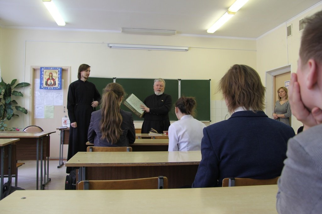 В этот же день в средней школе №1 г. Дрезны состоялась встреча учащихся с настоятелем Параскевинского храма деревни Горбачиха священником Антонием Готманом, который познакомил ребят с православными книгами.