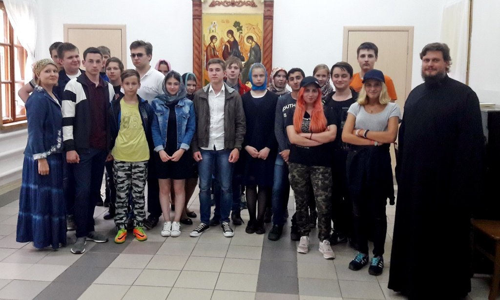 11 июля ребята из городского молодежного экологического лагеря труда и отдыха для несовершеннолетних посетили Троицкий храм мкр. Железнодорожный. Настоятель храма священник Александр Заломин рассказал об устройстве и архитектуре православного храма, его символике, истории и смысле богослужения.