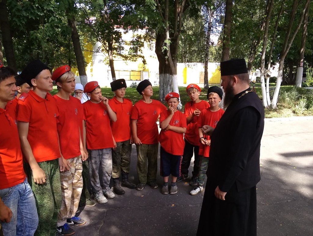 12 августа участники военно-патриотических сборов «10 дней в Пластунах», организованных на базе конного клуба им. благоверного князя Димитрия Донского, посетили воскресную Литургию в храме Воскресения Христова г. Павловского Посада. После окончания богослужения настоятель храма священник Александр Кувшинников провел экскурсию для юных патриотов. Ребята осмотрели храм, прилежащую территорию и поднялись на колокольню.
