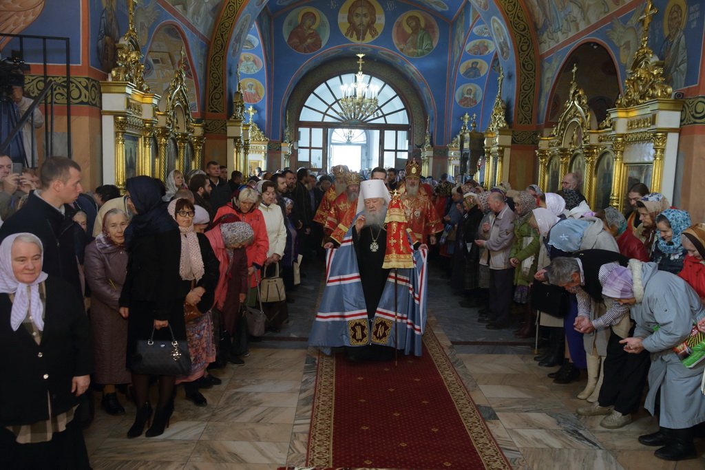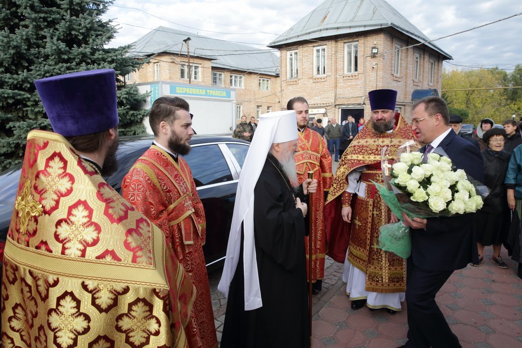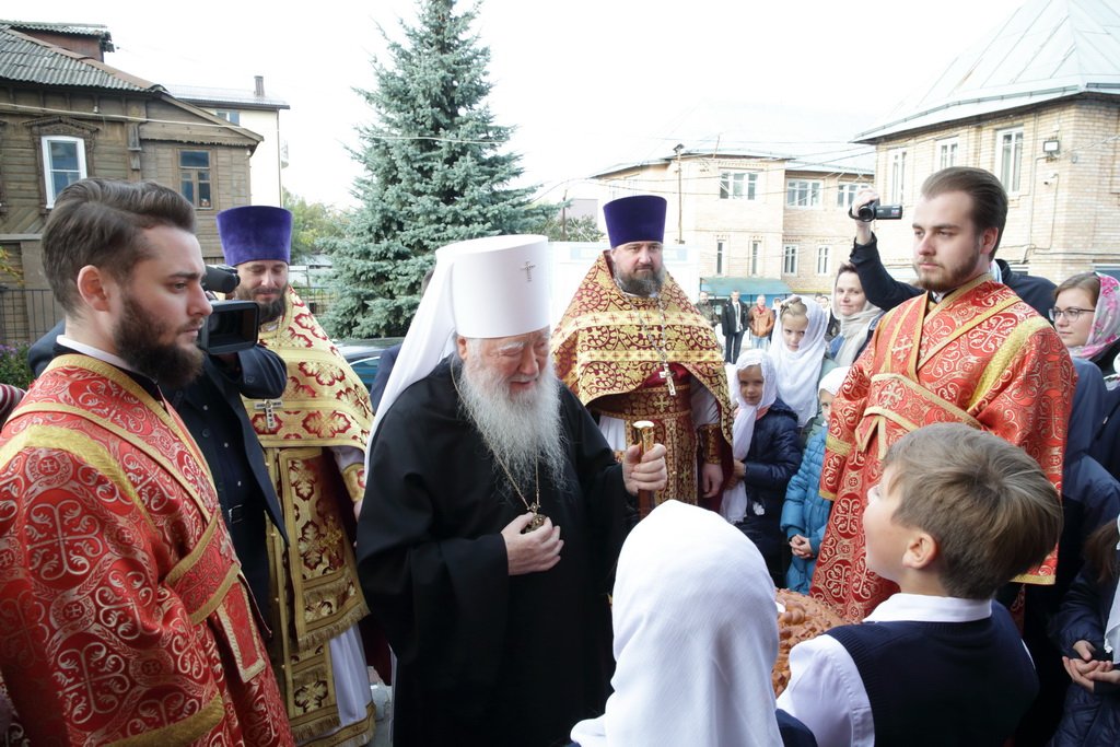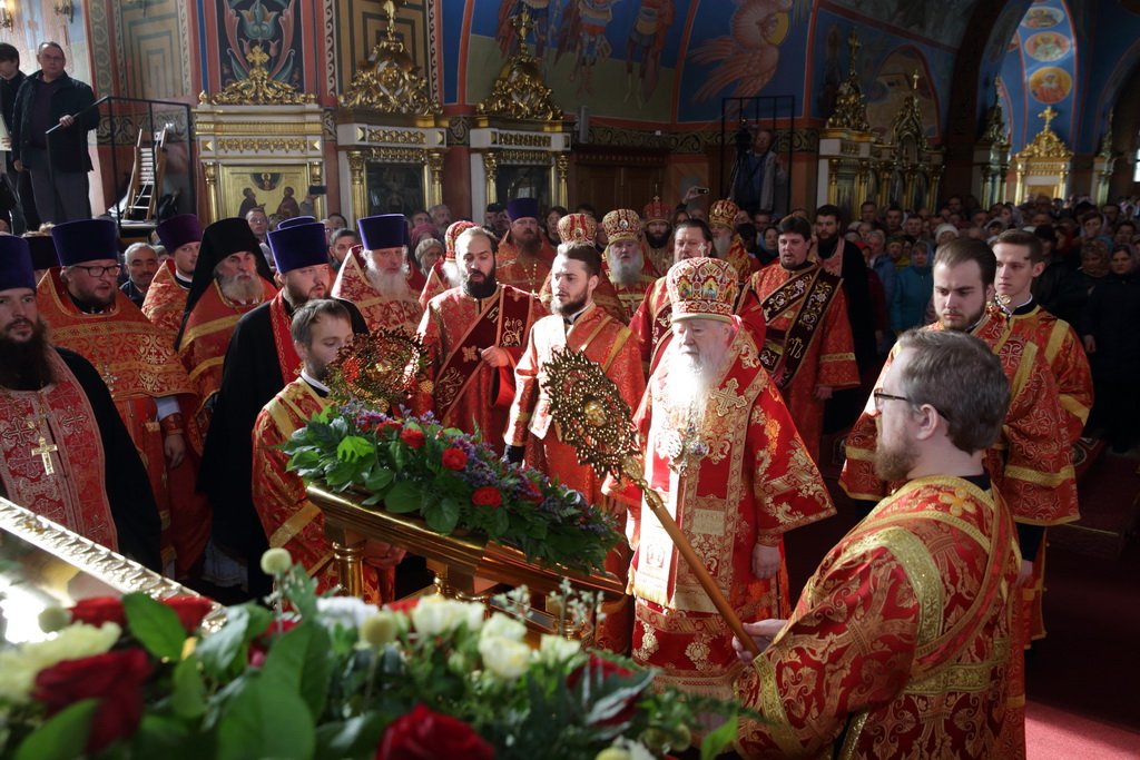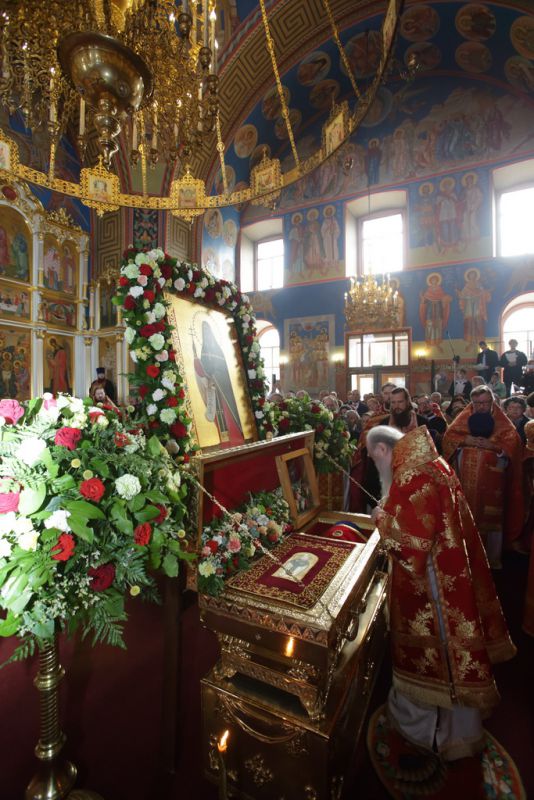 По окончании Литургии было совершено поклонение Честному и Животворящему Кресту Господню и молебен перед ракой с мощами священномученика Константина. Затем благочинный отец Марк обратился к митрополиту Ювеналию с приветственным словом: