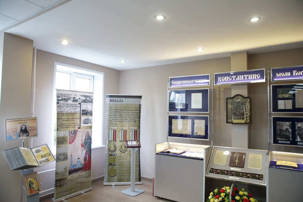 Отец Константин дивный святой, выдающийся пастырь с совершенно необычной судьбой. Он не был классическим священником XIX - начала XX века. Он не собирался изначально быть священником, закончил духовную школу, был миссионером, много трудился - и трудился весьма успешно, - оставаясь мирянином. Но Господь призрел на его труды, посмотрел на его сердце и увидел, что он способен на большее. Раб Божий Константин был приглашен сюда, рукоположен во священника и сразу поставлен благочинным и настоятелем собора. Больше 20 лет был усердным тружеником на святой Богородской земле, устраивая здесь церковную жизнь, жизнь очень трудную - время было сложное в истории нашей Церкви и нашего Отечества. И самому ему было тоже трудно. Однако Господь дал ему благодать, дал ему разум, дал ему благословение. И его труды были успешны. Успешны в ту меру, в какой мере могли быть успешны труды духовенства в то страшное, лютое время истории Отечества нашего. Он трудился, показывая, в первую очередь, добрый пример своей жизни как семьянин, отец множества детей, как добрый пастырь, священник, проповедник, устроитель народной жизни, и он действительно был любим своей паствой. Богу было угодно дать ему еще большее послушание. Он стал одним из наших первых новомучеников. Батюшка пострадал люто и страшно, но через его кончину явилась слава Церкви, потому что было видно, как священник не предал, не оставил веры, не оставил своего служения, не поколебался в самые последние минуты своей жизни, когда его уже казнили.