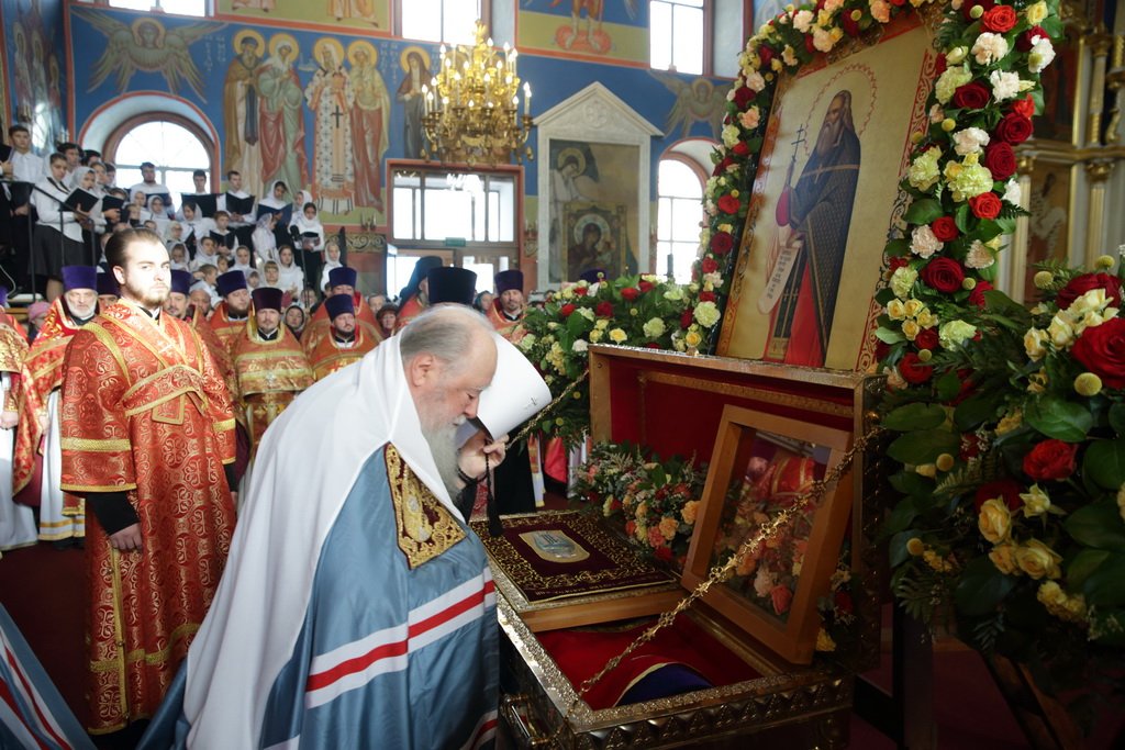 Мы сейчас собрались в такой торжественной обстановке, где много вас, много детей, прекрасный собор, где служил отец Константин, и мы чувствуем себя его наследниками. И архипастыри, и пастыри вдохновляются его служением, его подвигом. Мы все, братья и сестры, прибегаем к нему как к небесному покровителю.