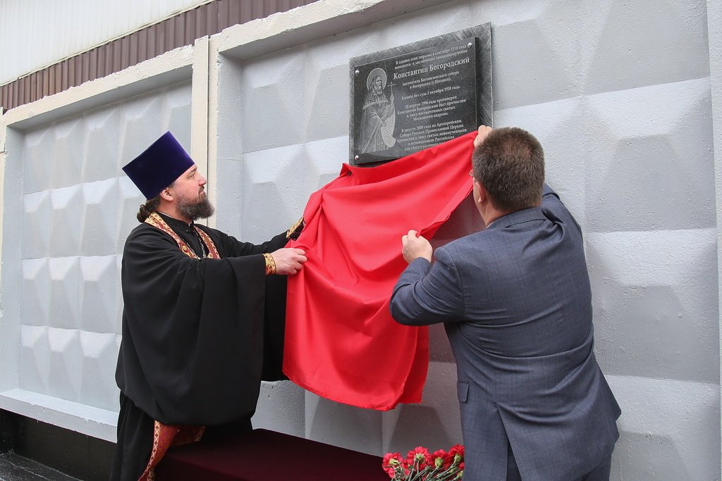 1 октября в Ногинске состоялось открытие мемориальной доски священномученику Константину Богородскому на стене СИЗО-1. Именно здесь, в этом тюремном здании, был заключен арестованный в сентябре 1918 года протоиерей Константин Голубев. На торжественном открытии мемориальной доски присутствовали исполняющий обязанности главы Богородского округа Игорь Сухин, секретарь Ногинского местного отделения партии «Единая Россия» Олег Карцов, председатель Епархиального отдела по тюремному служению священник Михаил Кузёмка, председатель Епархиального отдела по взаимодействию с Вооруженными силами и правоохранительными органами, благочинный Богородского округа протоиерей Марк Ермолаев, исполняющий обязанности начальника ФКУ СИЗО-1 майор Илья Парамонов, духовенство Богородского благочиния, сотрудники СИЗО-1. После торжественного открытия памятной доски отец Марк совершил молебен и освятил мемориал.