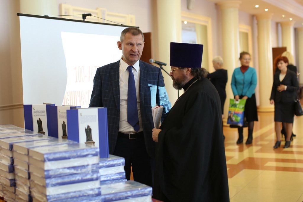 Затем в областном театре драмы и комедии города Ногинска состоялась историческая конференция, посвященная 100-летию подвига священномученика Константина Богородского. Перед ее началом в вестибюле театра состоялась презентация книги «Храмы Богородского края». Протоиерей Игорь Гагарин рассказал гостям о книге, ее создании и содержании.