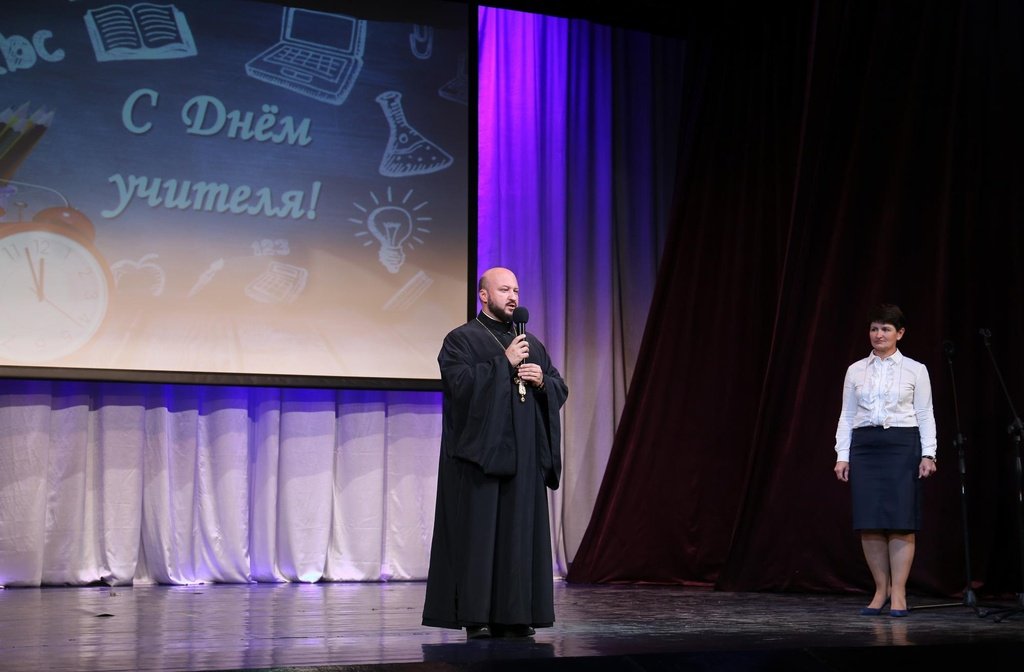 5 октября в доме культуры на площади А.С. Пушкина города Орехово-Зуево прошло торжественное мероприятие, посвященное Международному дню учителя, в котором приняли участие глава г.о. Орехово-Зуево Г. О. Панин, благочинный Орехово-Зуевского церковного округа протоиерей Андрей Коробков, начальник управления образования городского округа И. Б. Лазарева, учителя-ветераны, учителя школ и воспитатели детских садов города, другие почетные гости. Отец Андрей обратился с поздравительной речью к педагогам и вручил начальнику управления образования городского округа И. Б. Лазаревой благодарственную грамоту митрополита Ювеналия. Педагогам были вручены почетные грамоты. Затем состоялся праздничный концерт.