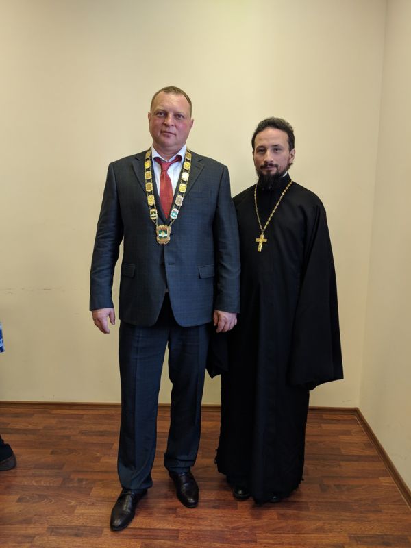 22 октября в доме культуры им. Косякова г. Рошаля прошла церемония вступления в должность главы городского округа Алексея Артюхина. В числе почетных гостей на церемонии присутствовали настоятель Скорбященского храма г. Рошаля священник Максим Вараев и настоятель Никольского храма села Середники священник Илия Депутатов.