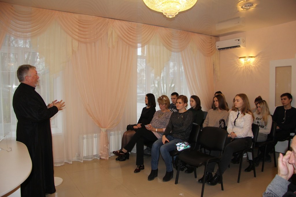24 октября в ЗАГС г.о. Ликино-Дулево со студентами Ликино-Дулевского политехнического колледжа встретились специалист Орехово-Зуевского районного краеведческого музея Е.Я. Головнов, клирик Ликино-Дулевского благочиния диакон Андрей Ходкевич, ответственный за работу со СМИ в благочинии, миссионер-катехизатор Иоанно-Богословского храма г. Ликино-Дулево С.В. Крылов.