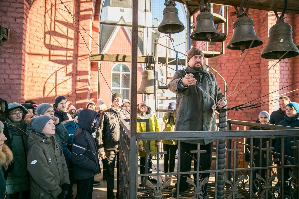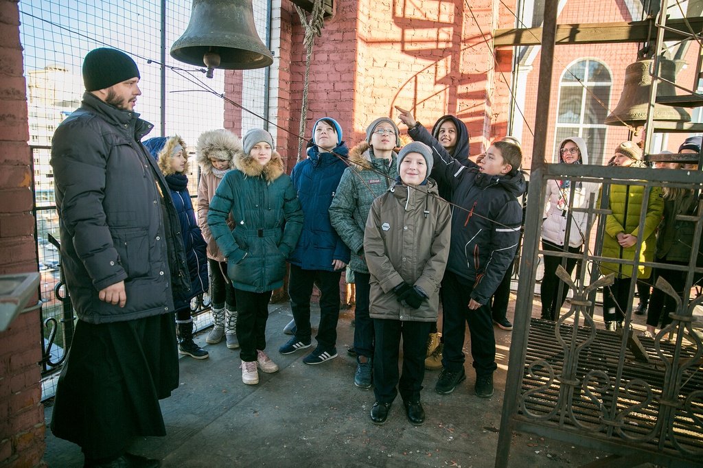 12 ноября в Троицком соборе г. Щелково прошла экскурсия для учащихся Щелковской гимназии, которую провел клирик храма священник Евгений Трушин. Батюшка рассказал ребятам историю создания и восстановления Троицкого собора. Гости осмотрели собор и нижний храм в честь мучениц Веры Надежды, Любови и матери их Софии. Также ребята поднялись на колокольню, где они увидели работу звонаря, услышали прекрасный колокольный звон и смогли сами позвонить в колокола.