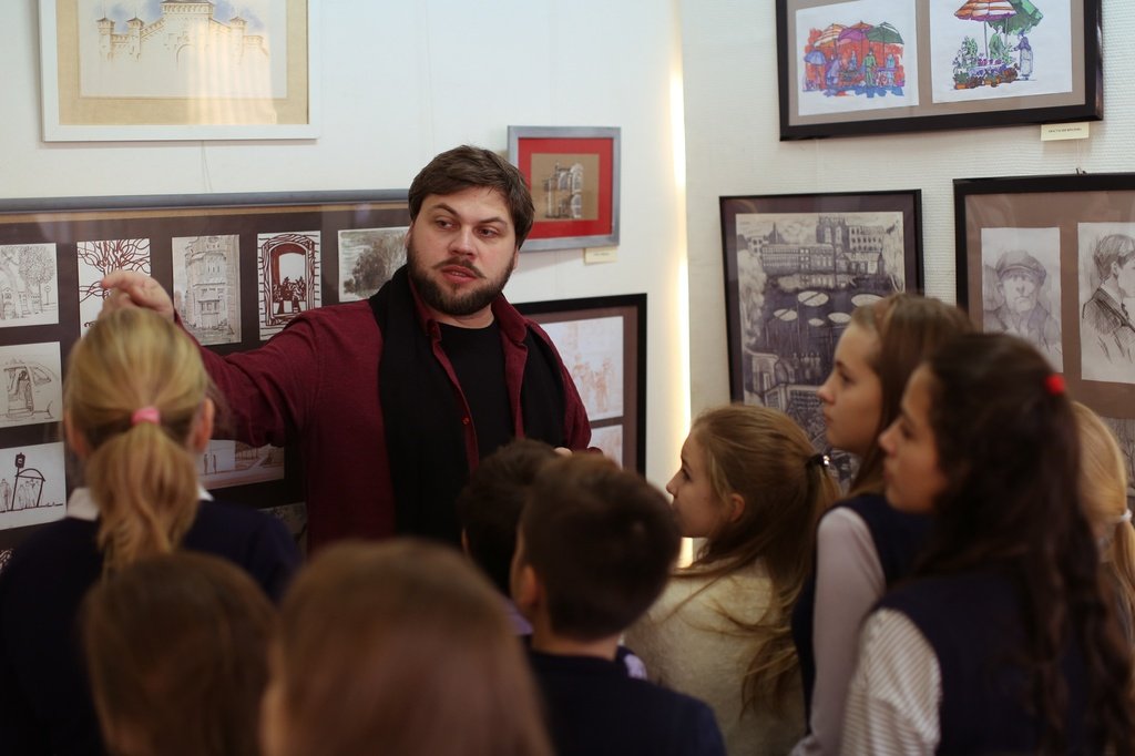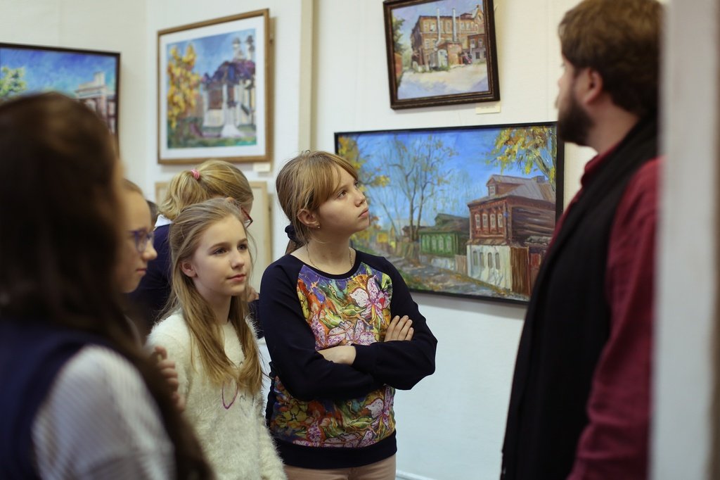 13 ноября юные художники из детской школы искусств при Богоявленском соборе Ногинска посетили Ногинское отделение Союза художников России. Экскурсию по выставке «Городской пленэр. Ногинск-2018» провел председатель Ногинского отделения Союза художников Подмосковья Валерий Болдырев. Дети познакомились с работами молодых художников, рассмотрели их наброски и этюды.