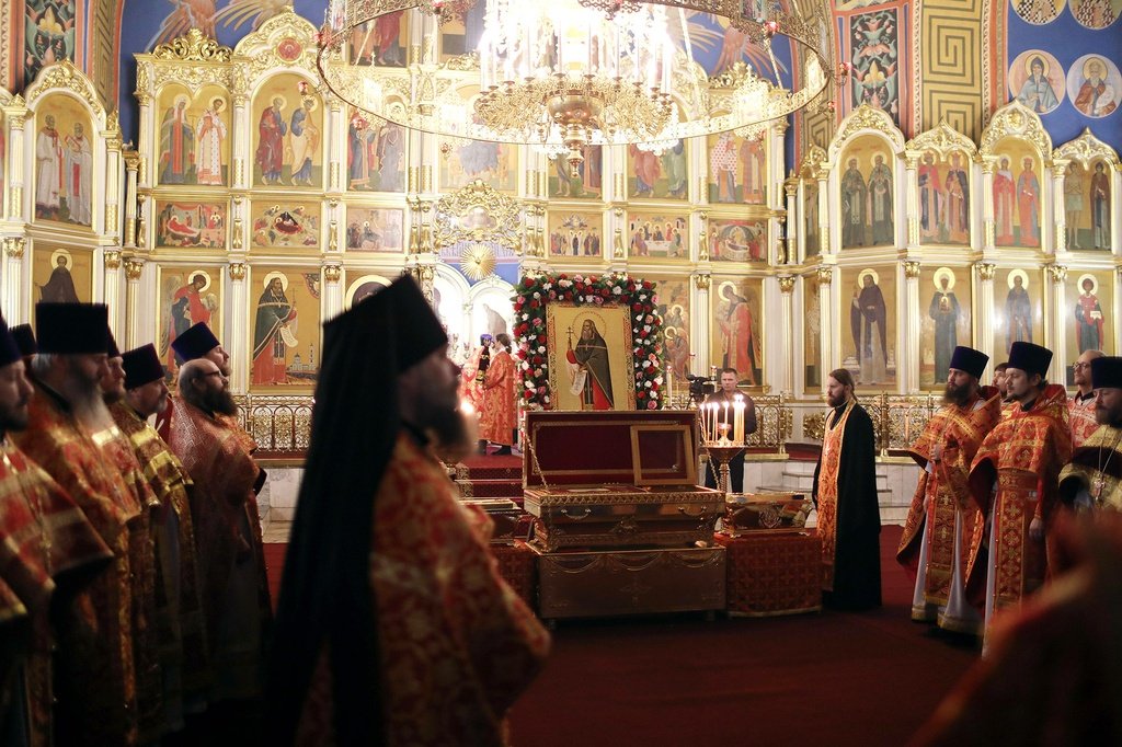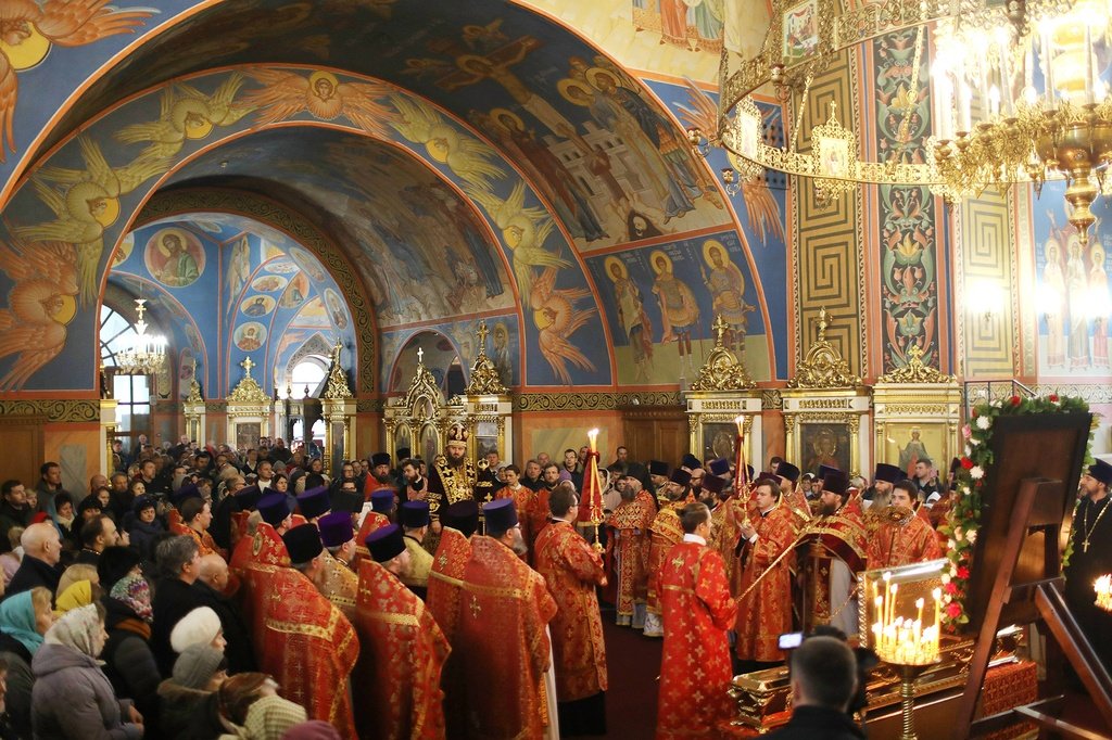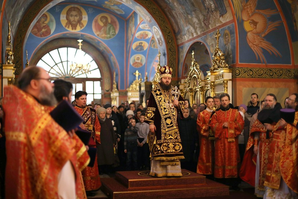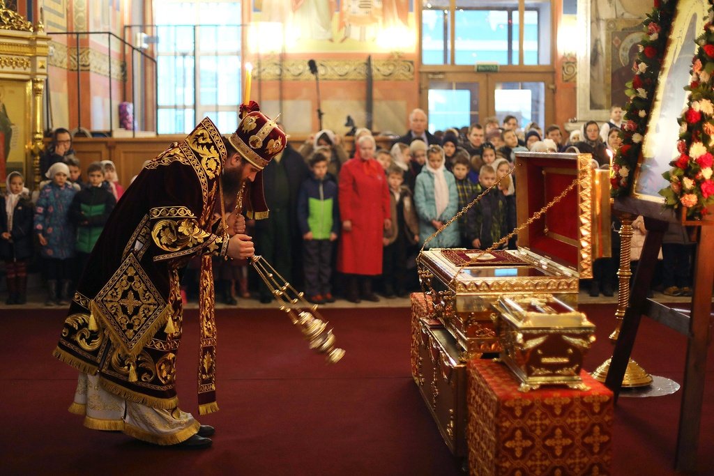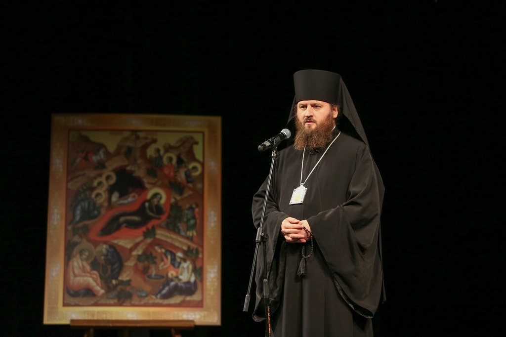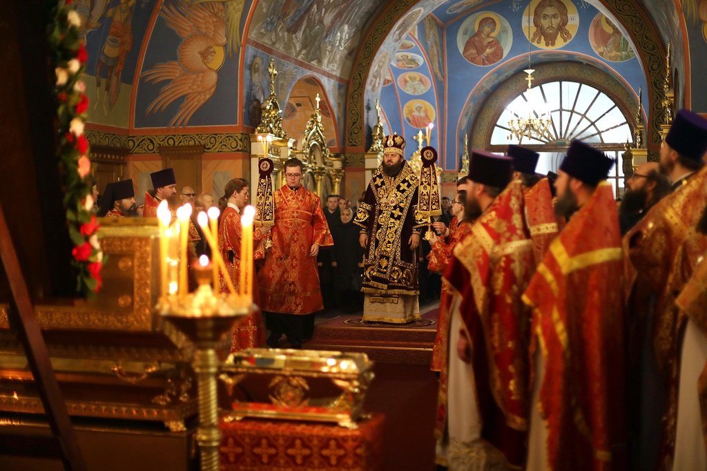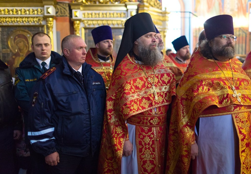 По окончании Литургии благочинный церквей Богородского округа, председатель Епархиального отдела по взаимодействию с Вооруженными силами и правоохранительными органами протоиерей Марк Ермолаев обратился к Владыке Константину с приветственным словом и преподнес Его Преосвященству икону Божией Матери «Донская».