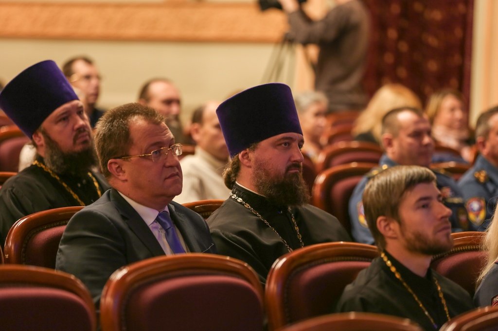 С архипастырским словом к присутствующим обратился епископ Зарайский Константин. Владыка вручил ряду военнослужащих и сотрудников силовых структур награды Московской епархии за усердные труды на благо Церкви и развитие взаимодействия в области духовного просвещения.