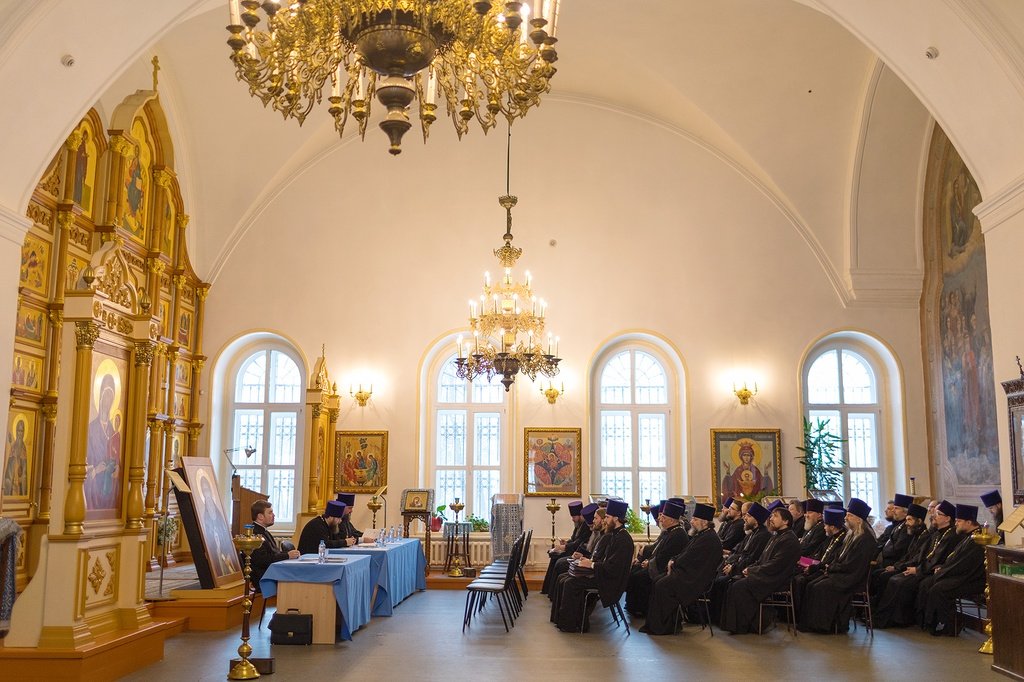 28 ноября в Христорождественском храме села Ямкино прошло собрание духовенства Богородского благочиния. Возглавил заседание благочинный церквей Богородского округа протоиерей Марк Ермолаев. На собрании обсуждались текущие вопросы приходской и богослужебной жизни благочиния и ход восстановления Серафимовского храма села Федино Воскресенского района.