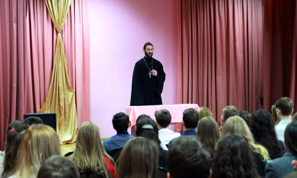 13 декабря настоятель Троицкого храма мкр. Железнодорожный г.о. Балашиха священник Александр Заломин провел беседу на актуальные темы современности с учащимися и преподавателями средней школы № 18.