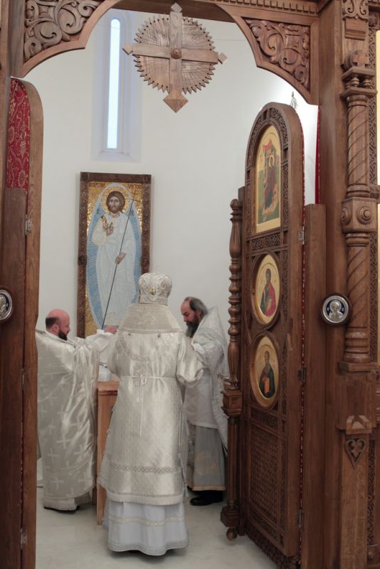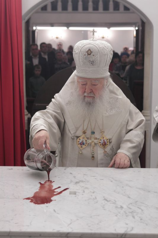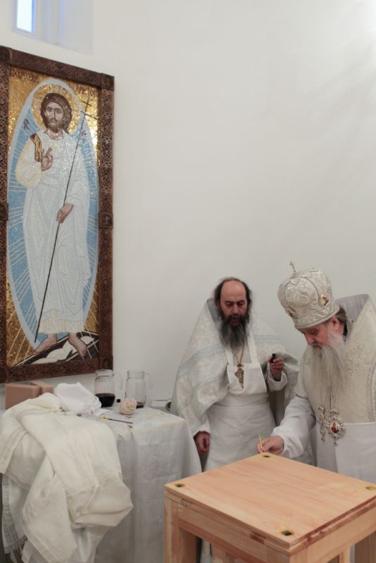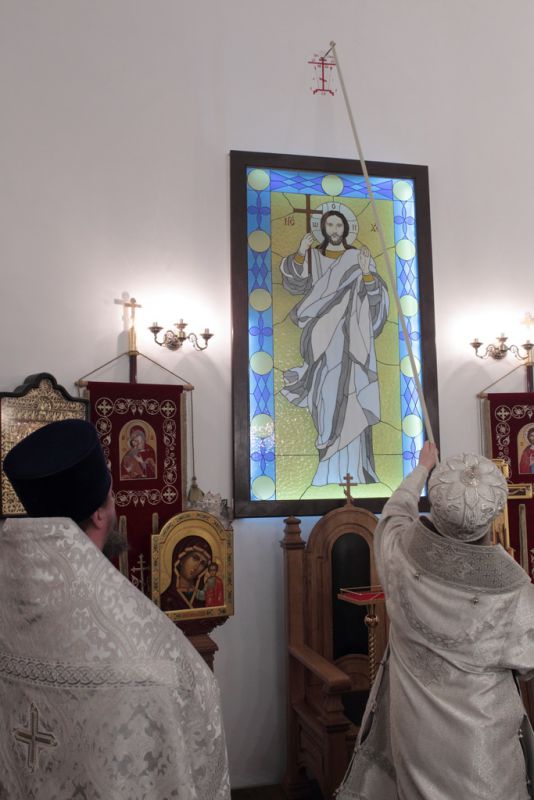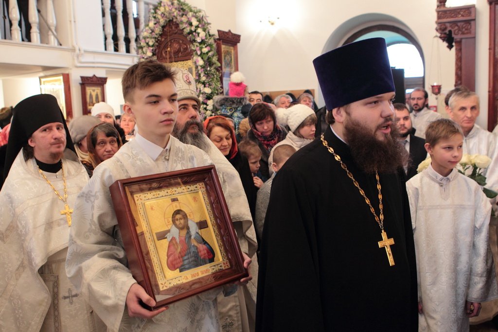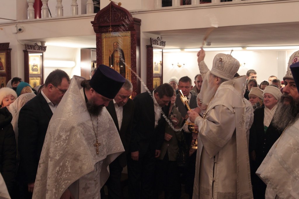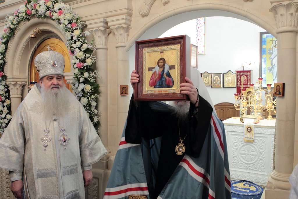 Ваше Высокопреосвященство, дорогой Владыка! Разрешите поблагодарить Вас от лица собравшихся и всех наших прихожан за то, что сегодня Вашей молитвой был освящен этот храм. Мы долго готовились к этому событию, просили Бога о помощи, и сегодня для всех нас праздник. Владыка, мы просим Вашего благословения на наши дальнейшие труды, чтобы приход наш рос, чтобы было больше деток в храме, чтобы люди, приходя в храм Божий, получали радость. Разрешите преподнести Вам в дар икону Господа нашего Иисуса Христа.