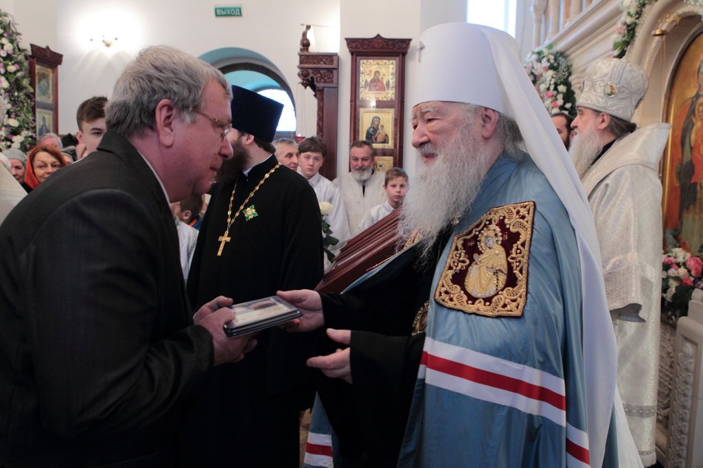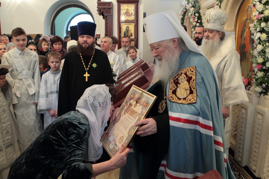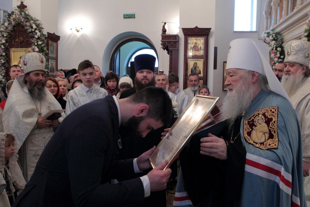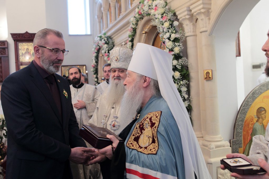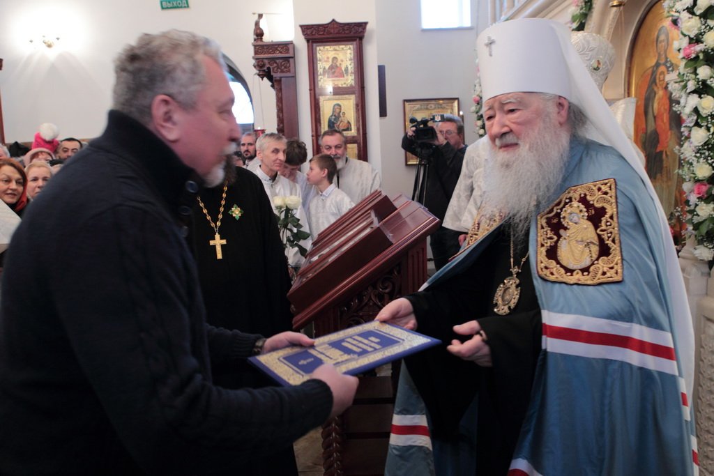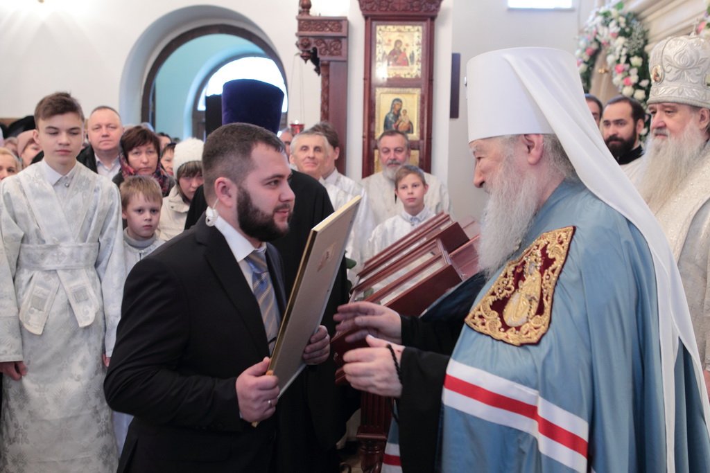 Владыка митрополит вручил награды строителям, жертвователям и усердным труженикам храма.