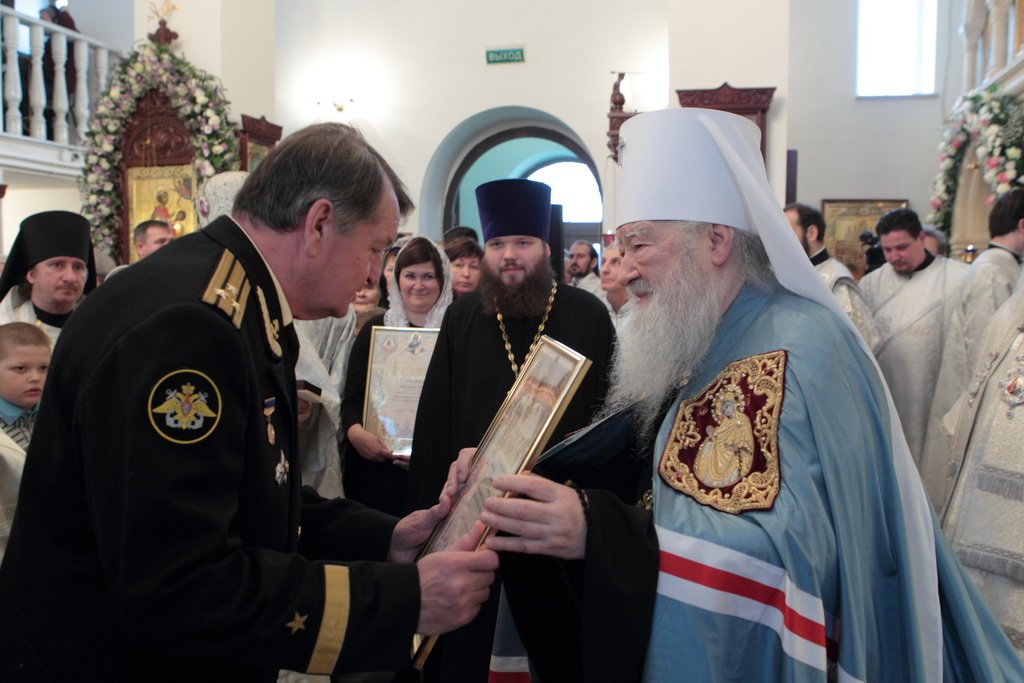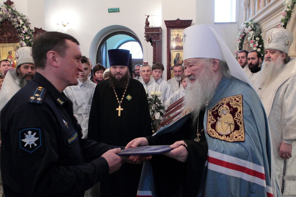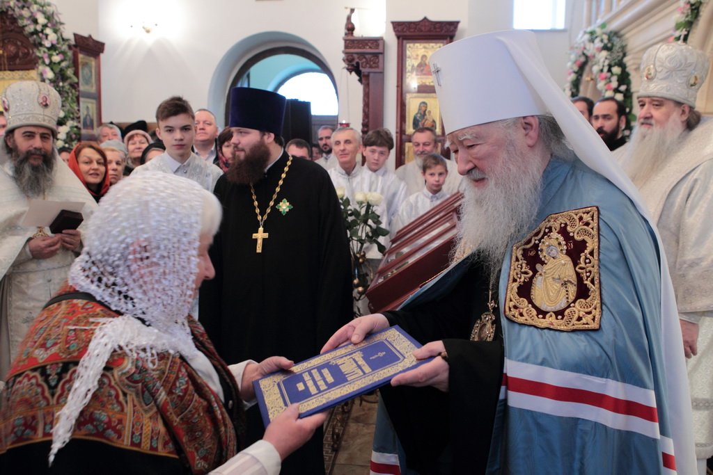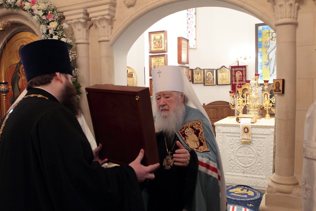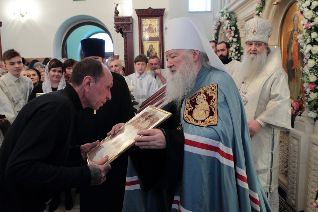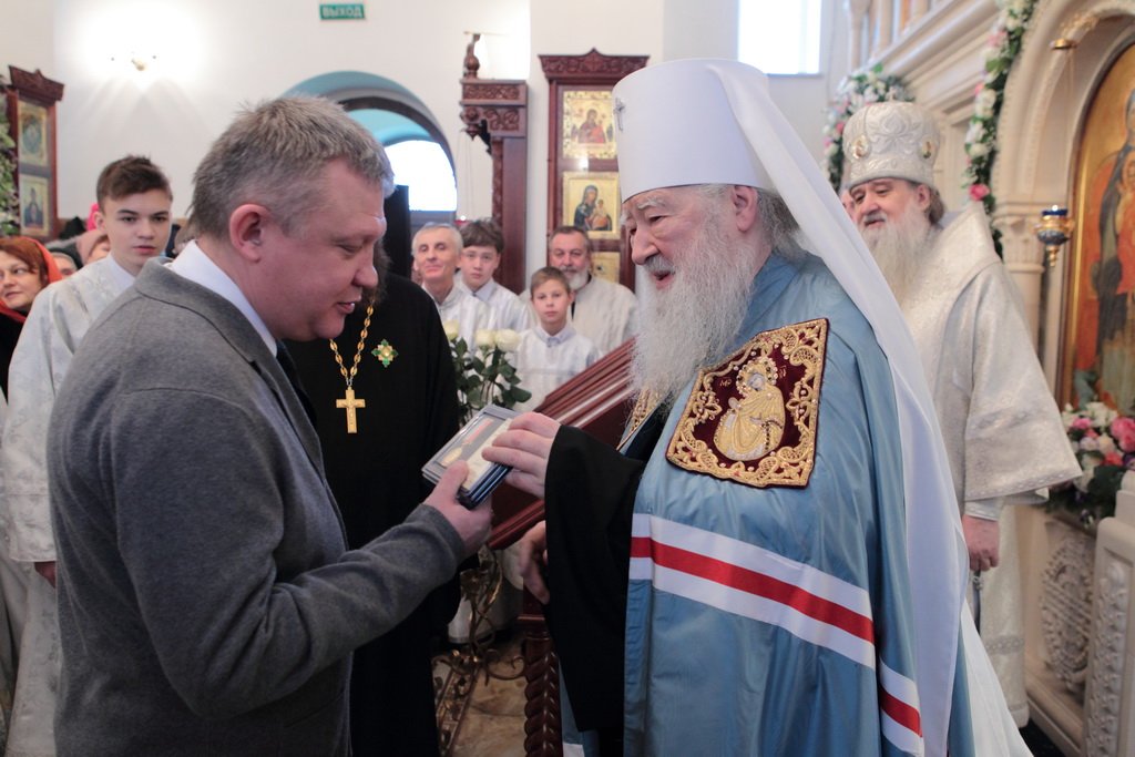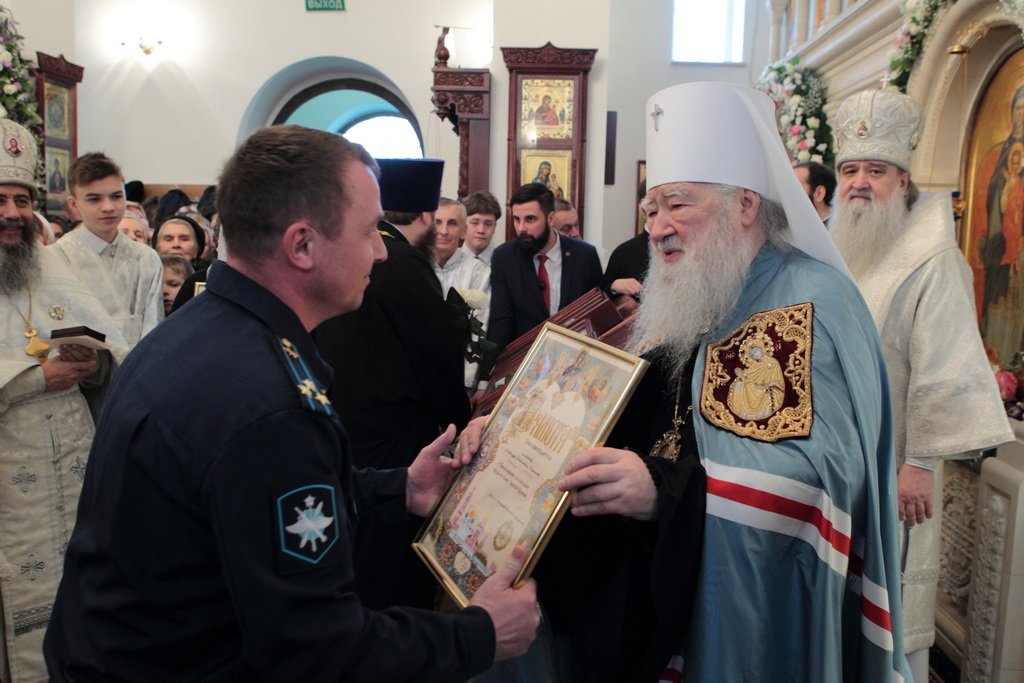 Владыка митрополит вручил награды строителям, жертвователям и усердным труженикам храма.