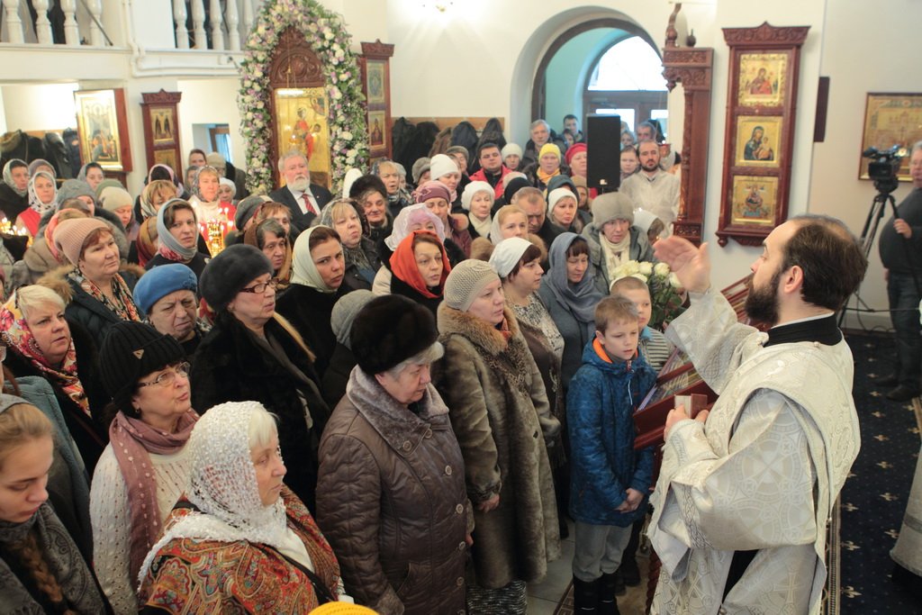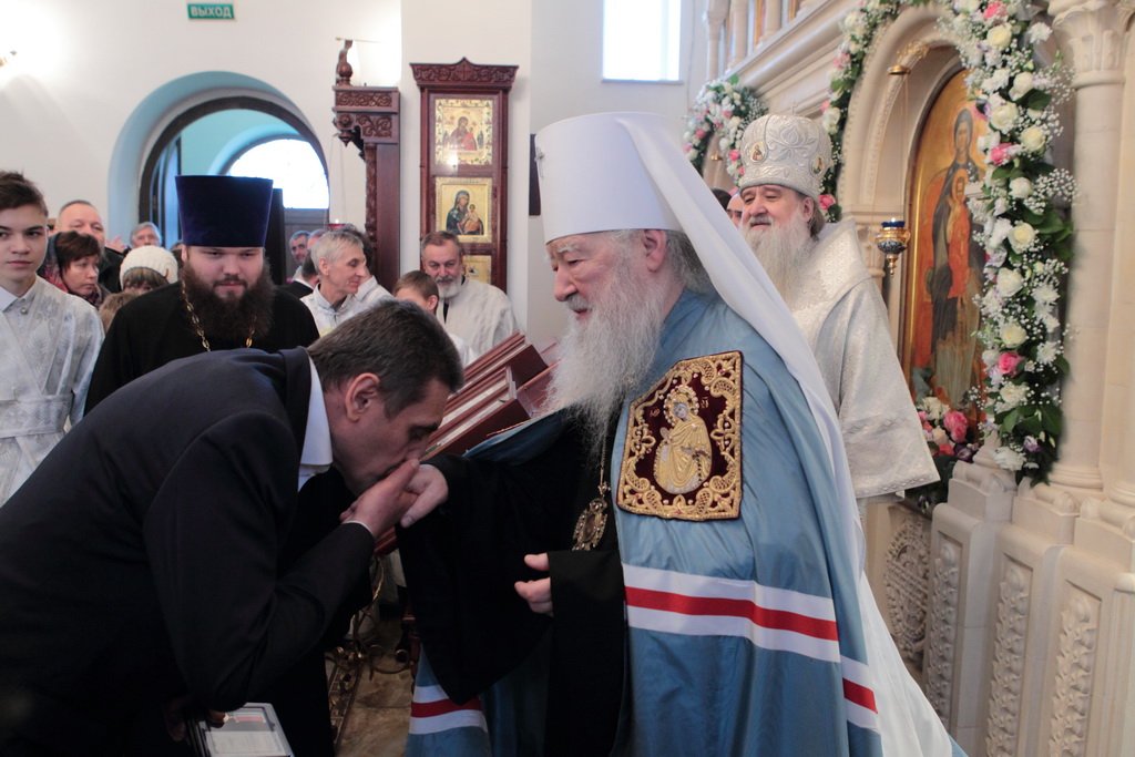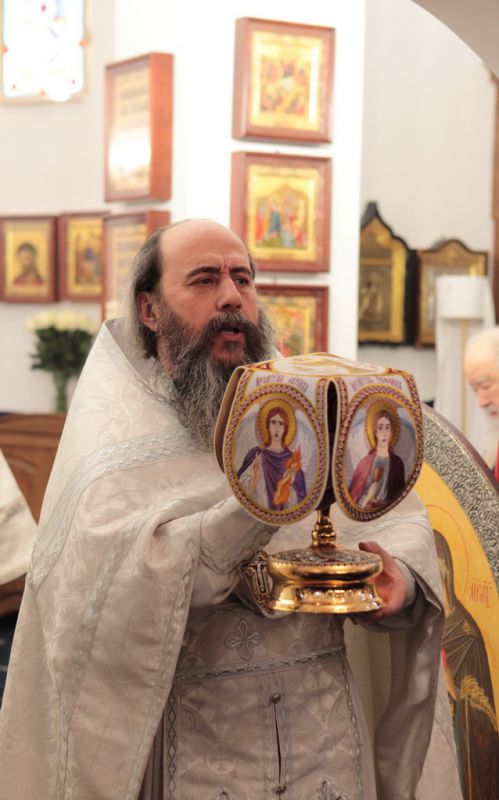 По окончании Литургии настоятель храма священник Александр Анохин обратился к Владыке митрополиту со словами приветствия и благодарности: