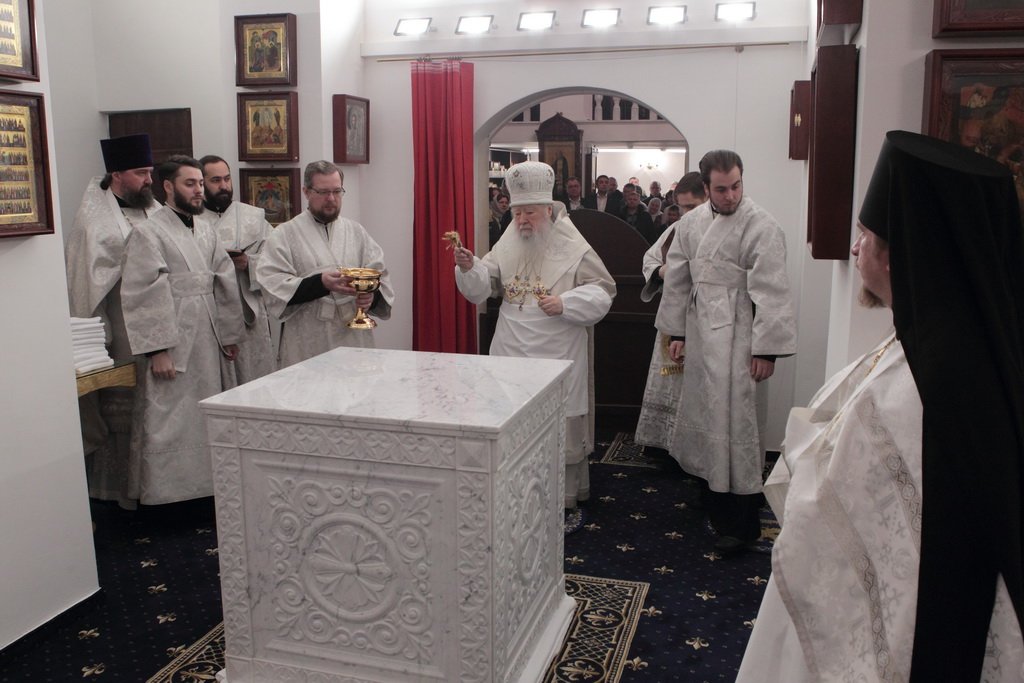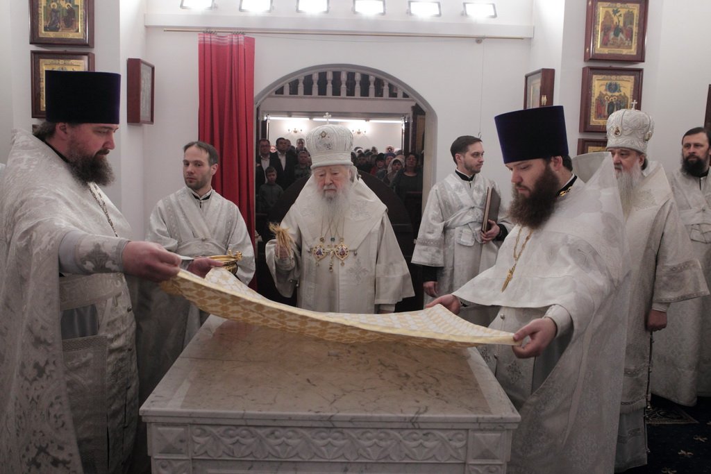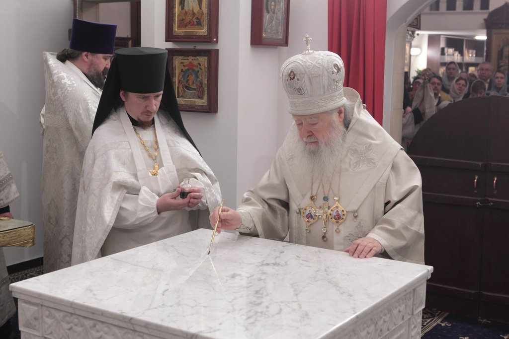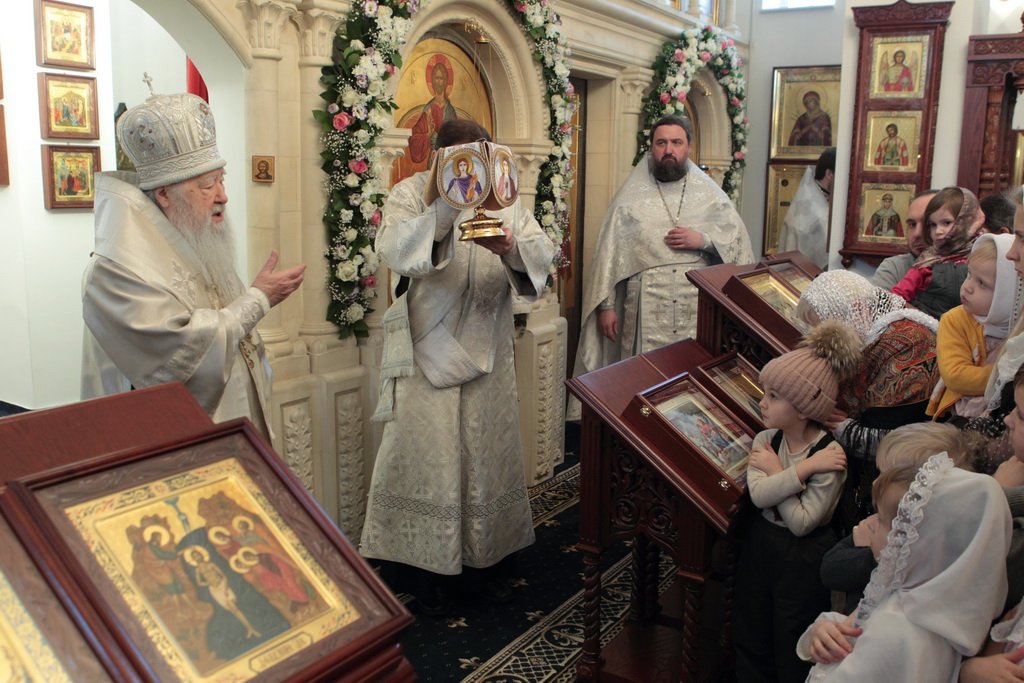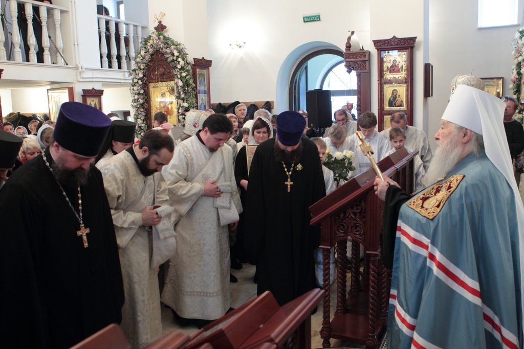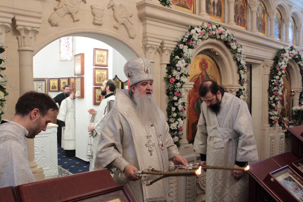 Его Высокопреосвященству сослужили епископ Серпуховской Роман, благочинный Богородского церковного округа протоиерей Марк Ермолаев, настоятель храма Александр Анохин и духовенство Московской епархии.