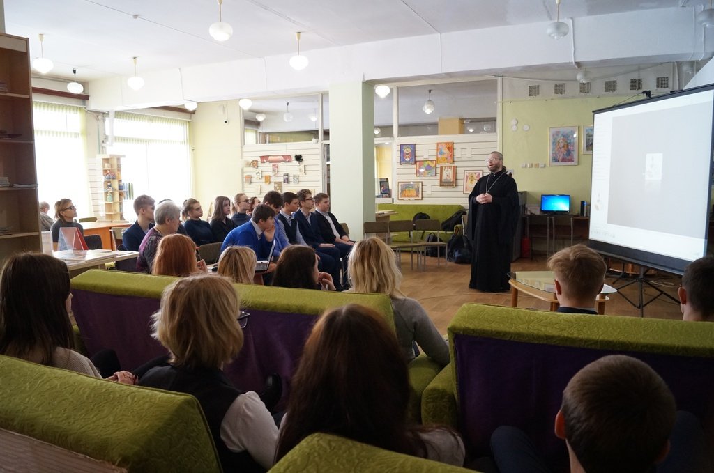 1 марта в клубе «Камертон» Шатурской центральной библиотеки состоялась беседа учеников средней школы №4 с клириком Никольского храма г. Шатуры священником Александром Боярских о современных технологиях воздействия на сознание и поведение людей.
