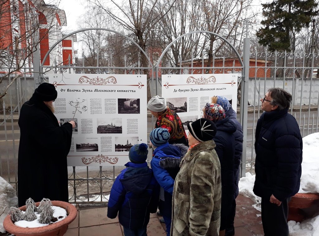 17 марта настоятель храма блаженной Ксении Петербургской г. Орехово-Зуево протоиерей Олег Ляне представил вниманию прихожан два новых стенда «От Волочка Зуева Московского княжества до Орехово-Зуево Московской области», которые были изготовлены специально к памятной дате основания Московского княжества. Отец Олег рассказал прихожанам историю образования города Орехово-Зуево и его роль в становлении Московского княжества. Всем детям в этот день отец Олег подарил книгу о благоверном князе Данииле Московском.
