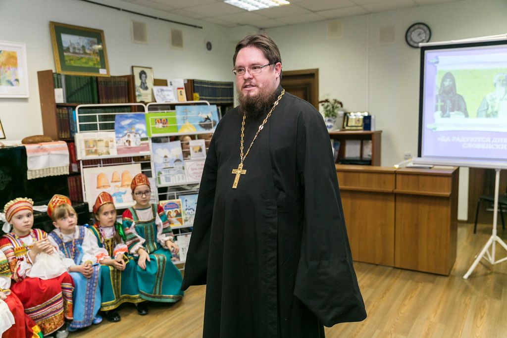 23 мая в православном духовно-просветительском центре «Благовест» г. Щелково прошло мероприятие «Да радуются днесь народы словенские!» На празднике присутствовали представители Щёлковских образовательных и культурных учреждений, студенты Щелковского колледжа. С приветственным словом выступил ключарь Троицкого собора г. Щелково священник Александр Амелин. Поэт Александр Ананичев, секретарь правления Союза писателей России, рассказал о своих книгах, а также представил новую книгу о преподобном Сергии Радонежском. Читальный зал центра был украшен творческими работами учеников художественной мастерской Игоря и Татьяны Кривовых. 23 мая в православном духовно-просветительском центре «Благовест» г. Щелково прошло мероприятие «Да радуются днесь народы словенские!». На празднике присутствовали представители Щёлковских образовательных и культурных учреждений, студенты Щелковского колледжа. Творческий коллектив «Юность» Щелковского колледжа представил литературную композицию «Слово о Кирилле и Мефодии». С приветственным словом выступил ключарь Троицкого собора г. Щелково священник Александр Амелин. 24 мая в Краснознаменской общеобразовательной школе состоялся урок славянской письменности и культуры, который провел настоятель Богородицерождественского храма поселка Образцово священник Димитрий Выдумкин. 24 мая в доме культуры деревни Медвежьи Озера была представлена программа «Живи и здравствуй, Русь святая!». С приветственным словом к гостям обратились заместитель главы городского округа Щёлково Юрий Радионов и настоятель Ксениевского храма деревни Медвежьи Озера священник Сергий Ковальчук. 25 мая воспитанники детского сада № 5 г. Щелково вместе с воспитателем Е.А. Давыдовой и родителями посетили Серафимовский храм г. Щелково. Экскурсию для гостей провел настоятель храма священник Виталий Крикота.
