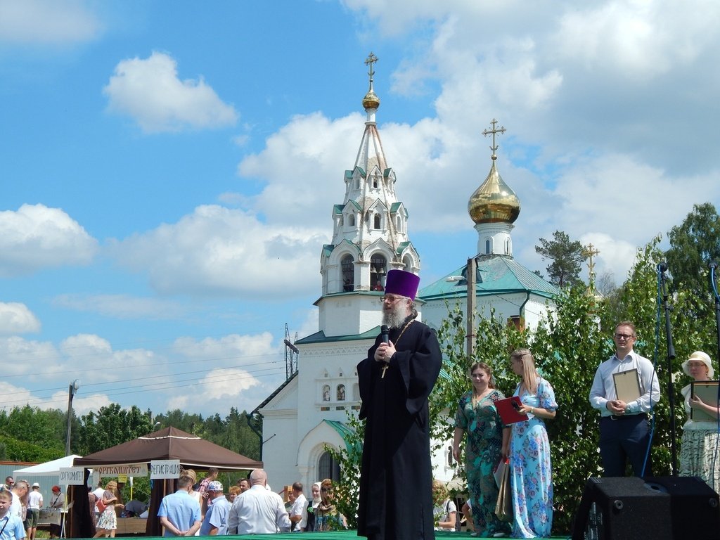 23 июня на территории Троицкого храма деревни Аверкиево Павлово-Посадского благочиния состоялся XIII Фестиваль колокольного звона «Аверкиевские перезвоны – 2019». Настоятель Троицкого храма священник Андрей Филиппенко по окончании Божественной литургии совершил молебен, после чего на площади у храма обратился к участникам праздника с приветственным словом.