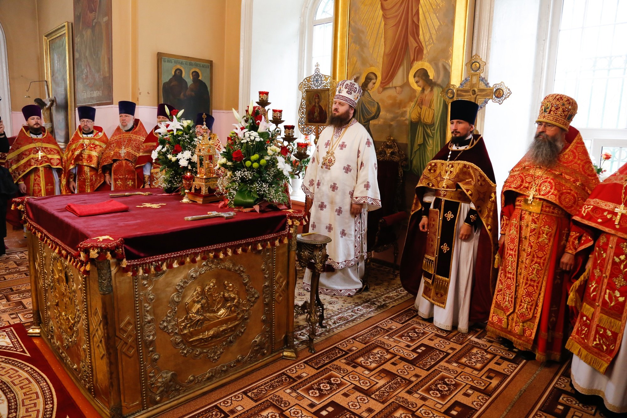 7 сентября в Шатурском благочинии прошли торжества, посвященные памяти Собора новомучеников Шатурских. В этот день Божественную литургию в Покровском храме села Власово совершил епископ Зарайский Константин. Его Преосвященству сослужили благочинные церковных округов Московской епархии: Шатурского - священник Владислав Решетников, Орехово-Зуевского - протоиерей Андрей Коробков, Егорьевского - протоиерей Сергий Кожевников, Бронницкого - священник Сергий Себелев, настоятель Михаило-Архангельского единоверческого храма села Михайловская Слобода архимандрит Иринарх (Денисов), настоятель Покровского храма протоиерей Михаил Депутатов и духовенство Шатурского благочиния. За богослужением молились глава городского округа Шатура Андрей Келлер, его заместитель Татьяна Александрова, начальник управления образования Наталья Веселова. Песнопения Божественной литургии исполняли хор Казанского храма села Петровское и детско-юношеский хор Шатурского благочиния. По завершении богослужения епископ Константин передал духовенству и мирянам благословение митрополита Ювеналия.