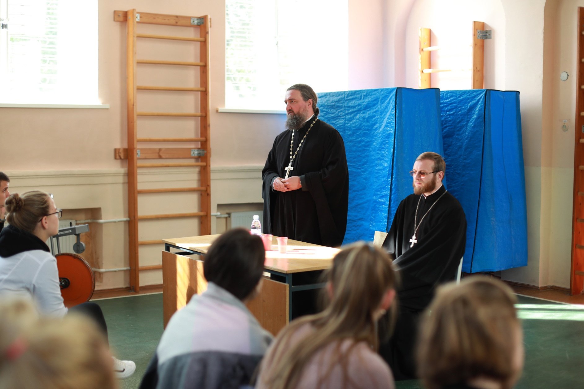 26 сентября благочинный Богородского церковного округа протоиерей Марк Ермолаев посетил Электростальский медицинский колледж, где провел со студентами-медиками беседу на тему «Человек и Бог». На встрече присутствовали клирик Вознесенского храма г. Электростали священник Илия Максимов, директор медицинского колледжа Наталья Шарапина, заместитель директора по учебно-воспитательной работе Светлана Андерсон, преподаватели училища.