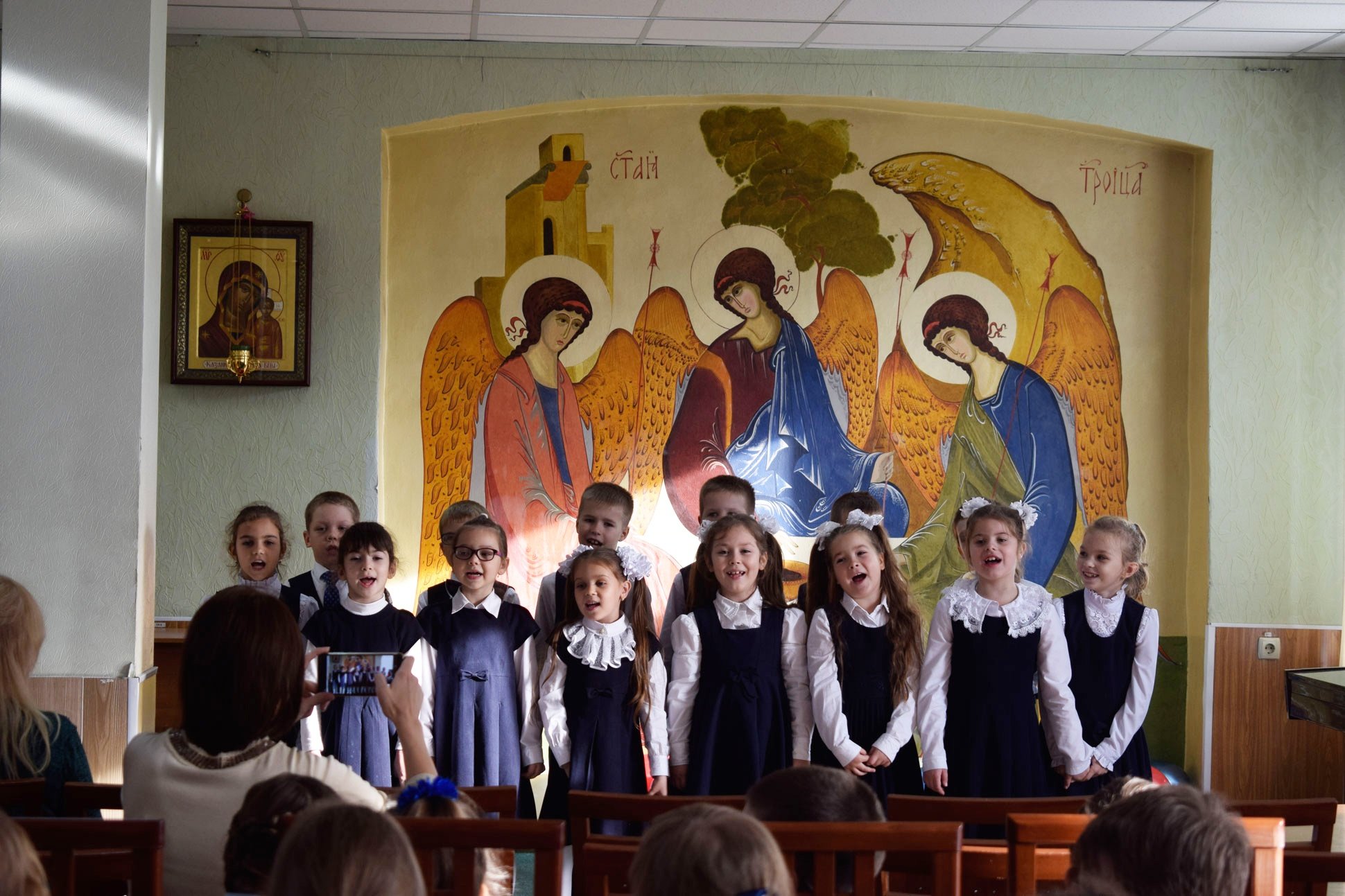 21 октября в Щелковском отделении Православной гимназии «Ковчег» состоялось торжественное посвящение первоклассников в гимназисты. Праздник прошел в форме игрового урока, на котором первоклассники пели песни и читали стихи о школе, отгадывали загадки о школьных предметах. Духовник гимназии, клирик Троицкого собора г. Щелкова священник Максим Алифанов обратился к присутствующим с пастырским словом, поздравил первоклассников и подарил им иконы.