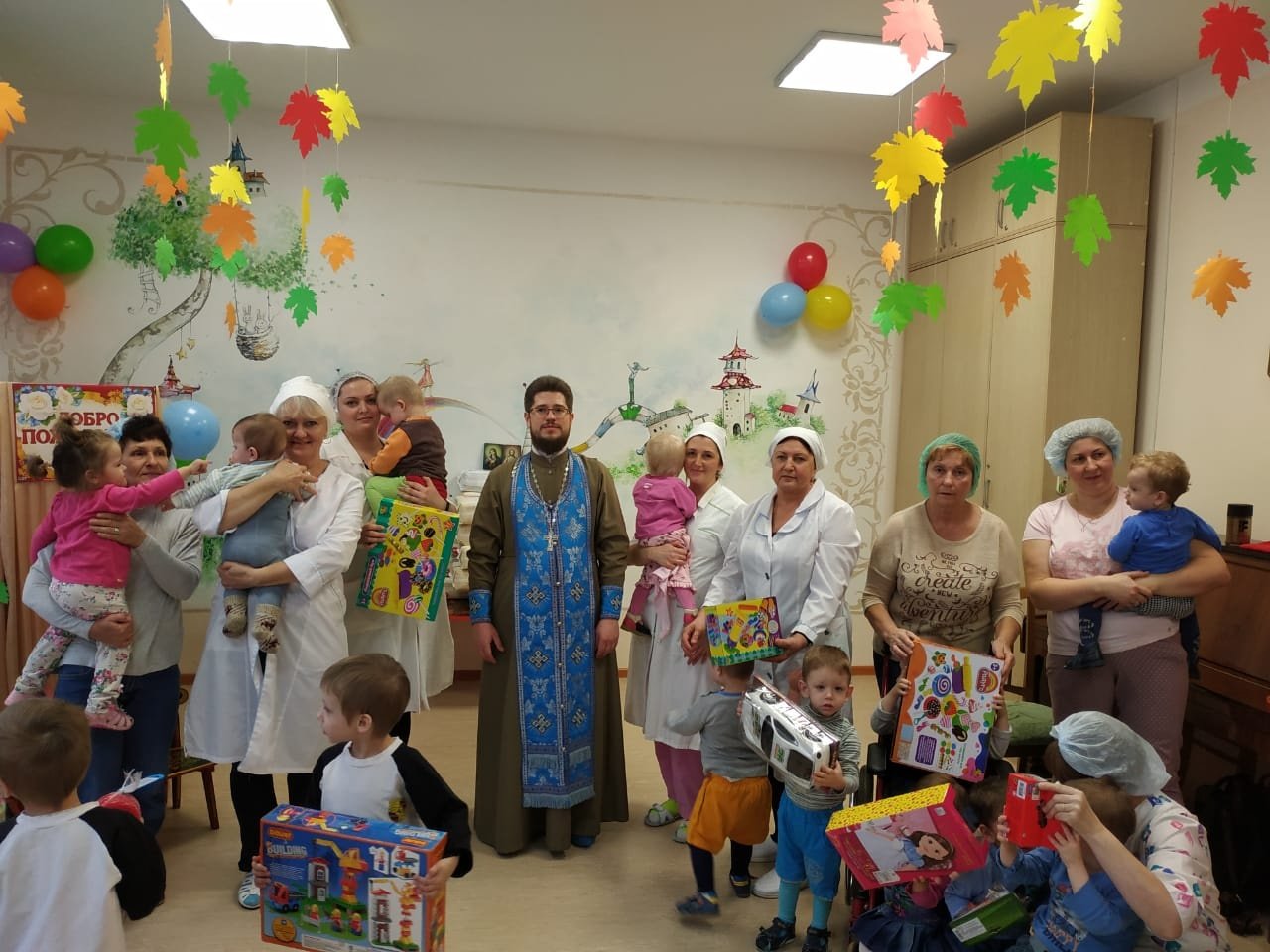 4 ноября прихожане Державного храма г. Фрязино вместе с настоятелем священником Димитрием Третьяковым посетили Фрязинский специализированный дом ребенка для детей с заболеваниями центральной нервной системы. Встреча началась с молитвы и причащения крещеных воспитанников учреждения. В ходе подготовки к акции прихожанами Державного храма для дома ребенка были собраны материальные средства, часть которых передали сотрудникам для приобретения необходимых для детей очков. На оставшиеся средства были закуплены подгузники и игрушки.