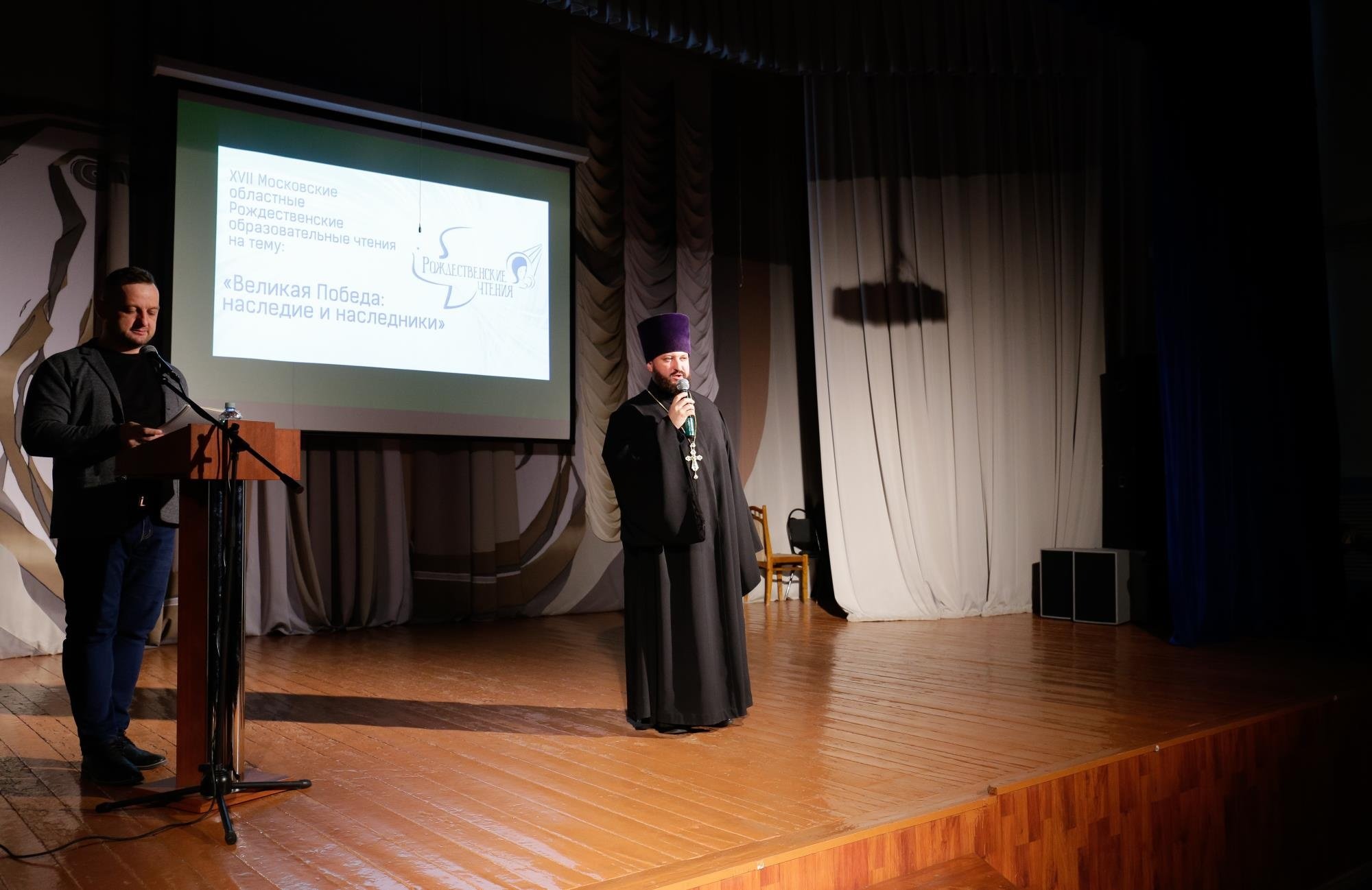 18 декабря в актовом зале Государственного гуманитарного технологического университета состоялась встреча «Великая Победа: наследие и наследники», на которой присутствовали благочинный Орехово-Зуевского церковного округа протоиерей Андрей Коробков, проректор университета по воспитательной работе и молодежной политике А. В. Рябцев, преподаватели и студенты. Протоиерей Андрей Коробков обратился к собравшимся с приветственным словом. С докладами выступили кандидат исторических наук преподаватель В. Н. Алексеев, настоятель Георгиевского храма г. Орехово-Зуево священник Димитрий Филин, доктор филологических наук профессор М. В. Яковлев.