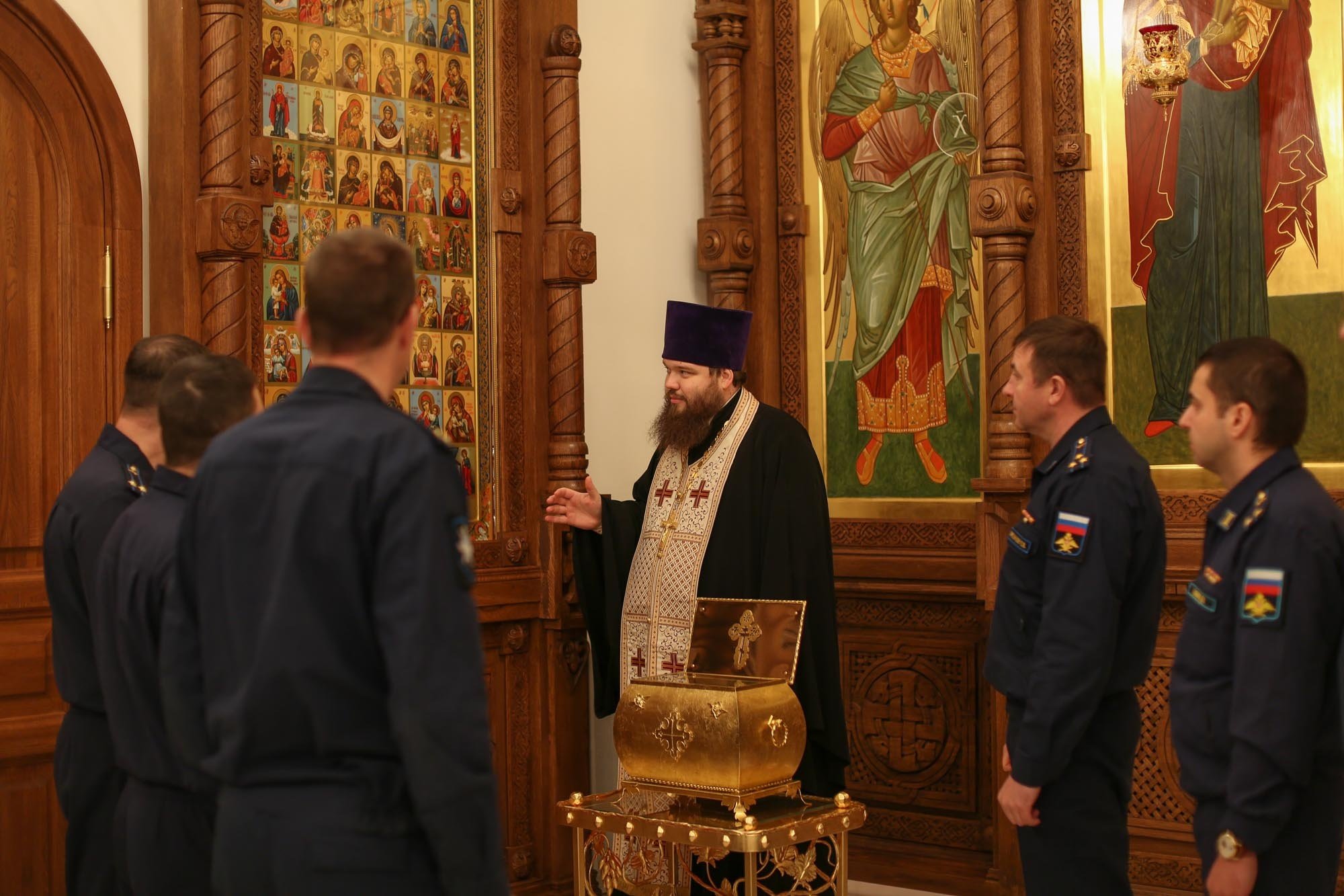 30 декабря храм блаженной Матроны Московской г. Ногинска посетил офицерский состав войсковой части во главе с командиром Евгением Брехунцовым. Офицеров встретил заместитель председателя Епархиального отдела по взаимодействию с Вооруженными силами и правоохранительными органами священник Александр Анохин, который провел для гостей экскурсию по храму.