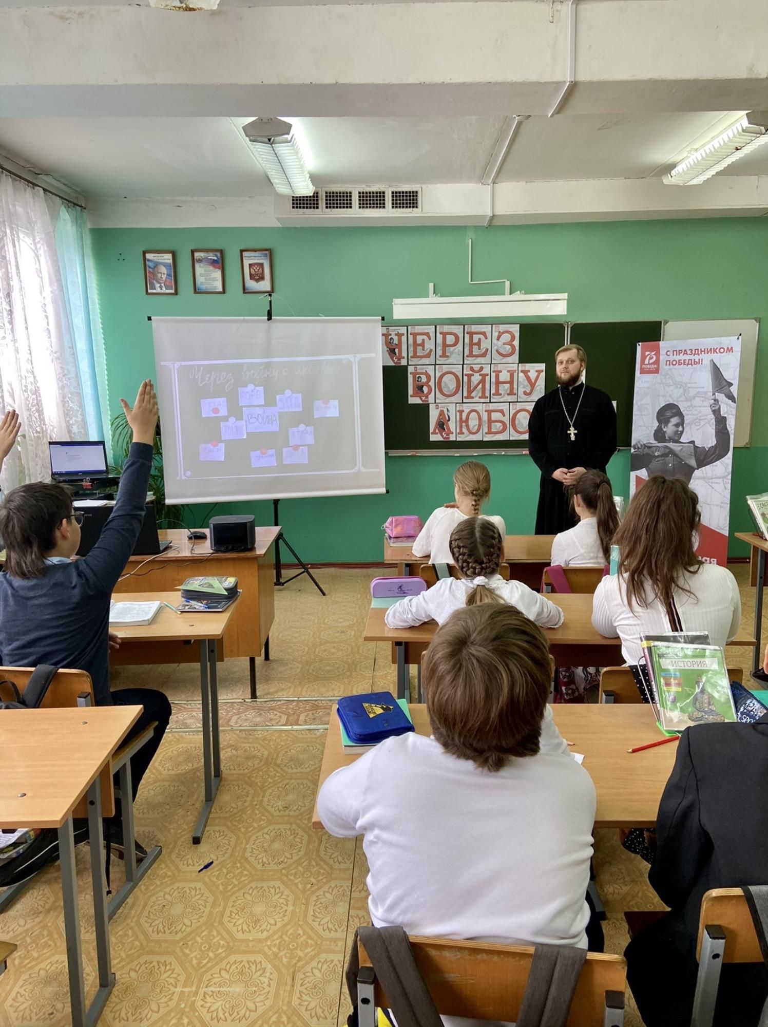 29 сентября в учебных заведениях Орехово-Зуевского г.о., в рамках Всероссийского открытого урока «Через войну с любовью», приуроченного к 75-летию Победы в Великой Отечественной войне, состоялись открытые видео-уроки. На каждом уроке присутствовали представители духовенства. После уроков настоятель Георгиевского храма г. Орехово-Зуево священник Димитрий Филин, настоятель храма Новомучеников и исповедников Орехово-Зуевских г. Орехово-Зуево священник Павел Скрипник и настоятель Богородицерождественского храма села Гора г. Орехово-Зуево священник Александр Воронцов провели тематические беседы с учащимися школ №12 и №16, а также Государственного гуманитарно-технологического университета г. Орехово-Зуево.