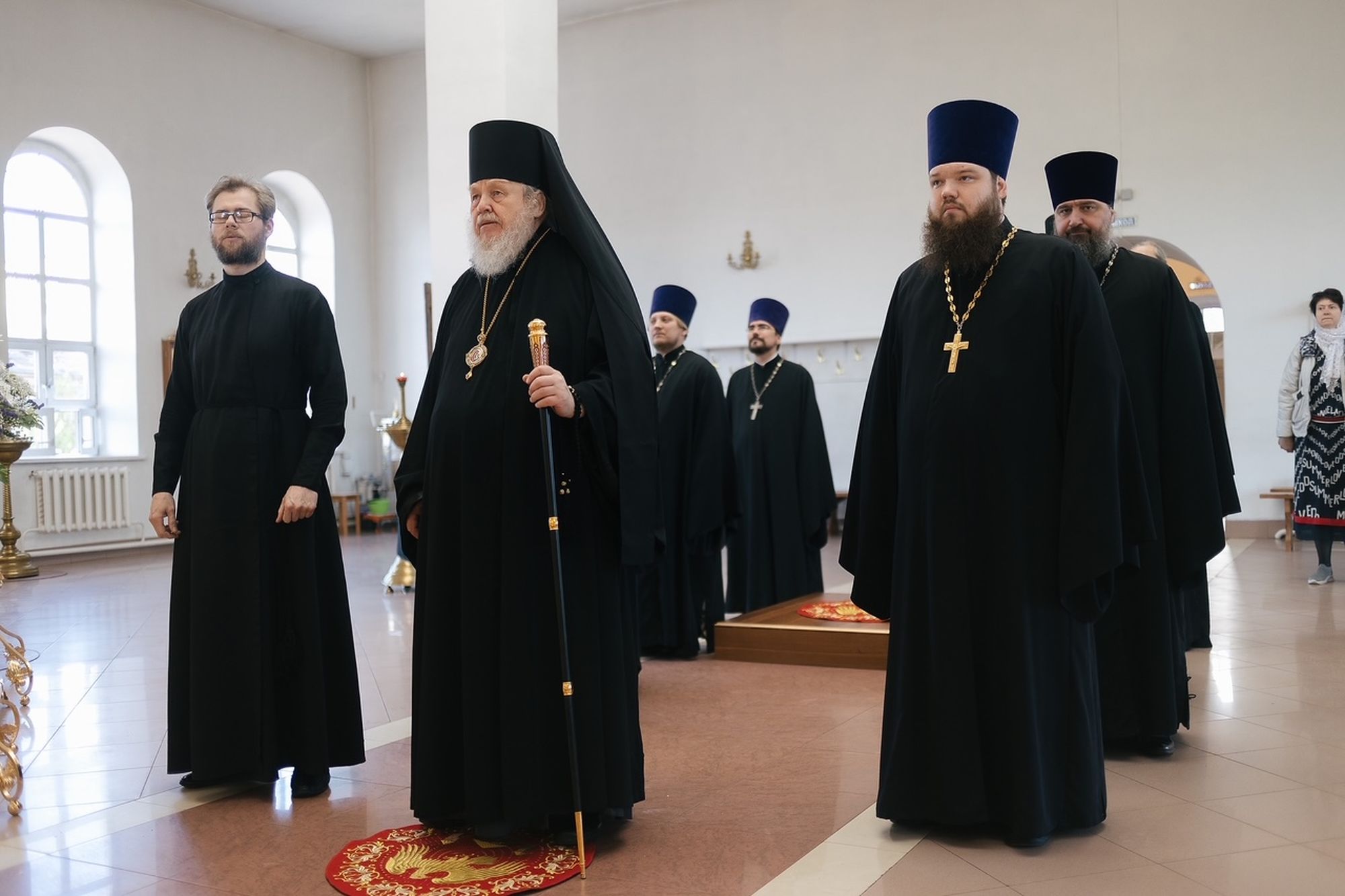 Владыке сослужили секретарь Балашихинского епархиального управления протоиерей Алексий Михаленя, благочинные церковных округов Балашихинской епархии: Павлово-Посадского – священник Александр Анохин, Орехово-Зуевского – протоиерей Андрей Коробков, Богородского – протоиерей Марк Ермолаев, Ликино-Дулевского – священник Антоний Рыжаков, Лосино-Петровского — священник Павел Галушко, Балашихинского – священник Михаил Конюхов; а также настоятель Николо-Берлюковской пустыни игумен Евмений (Лагутин), настоятель Покровско-Васильевского мужского монастыря игумен Андрей (Тонков), настоятель Гуслицкого Спасо-Преображенского мужского монастыря игумен Серафим (Голованов), духовенство Балашихинской епархии.