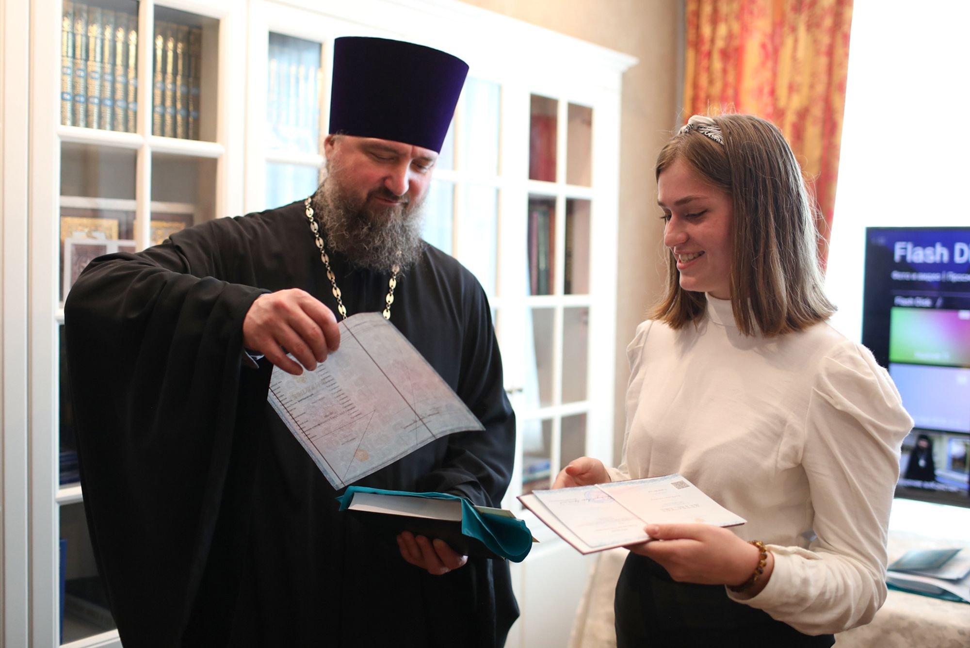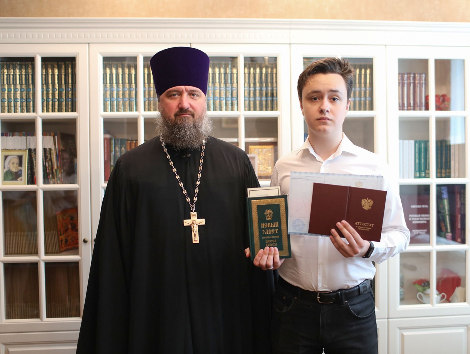 25 июня в духовно-просветительском центре при Богоявленском соборе Ногинска благочинный церквей Богородского округа протоиерей Марк Ермолаев вручил аттестаты выпускникам 11 класса Православной классической гимназии имени священномученика Константина Богородского.