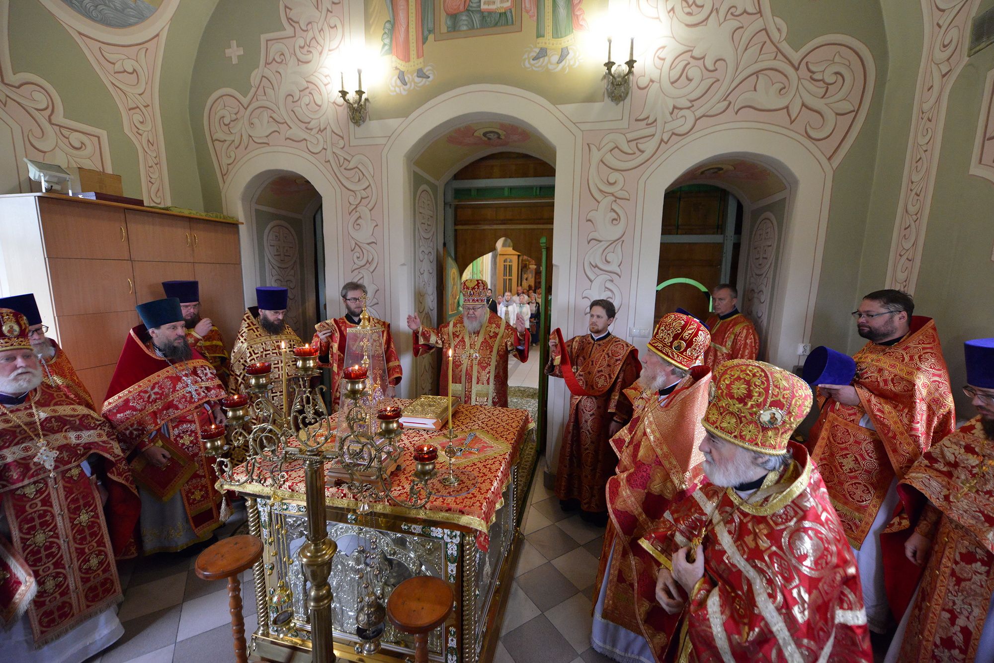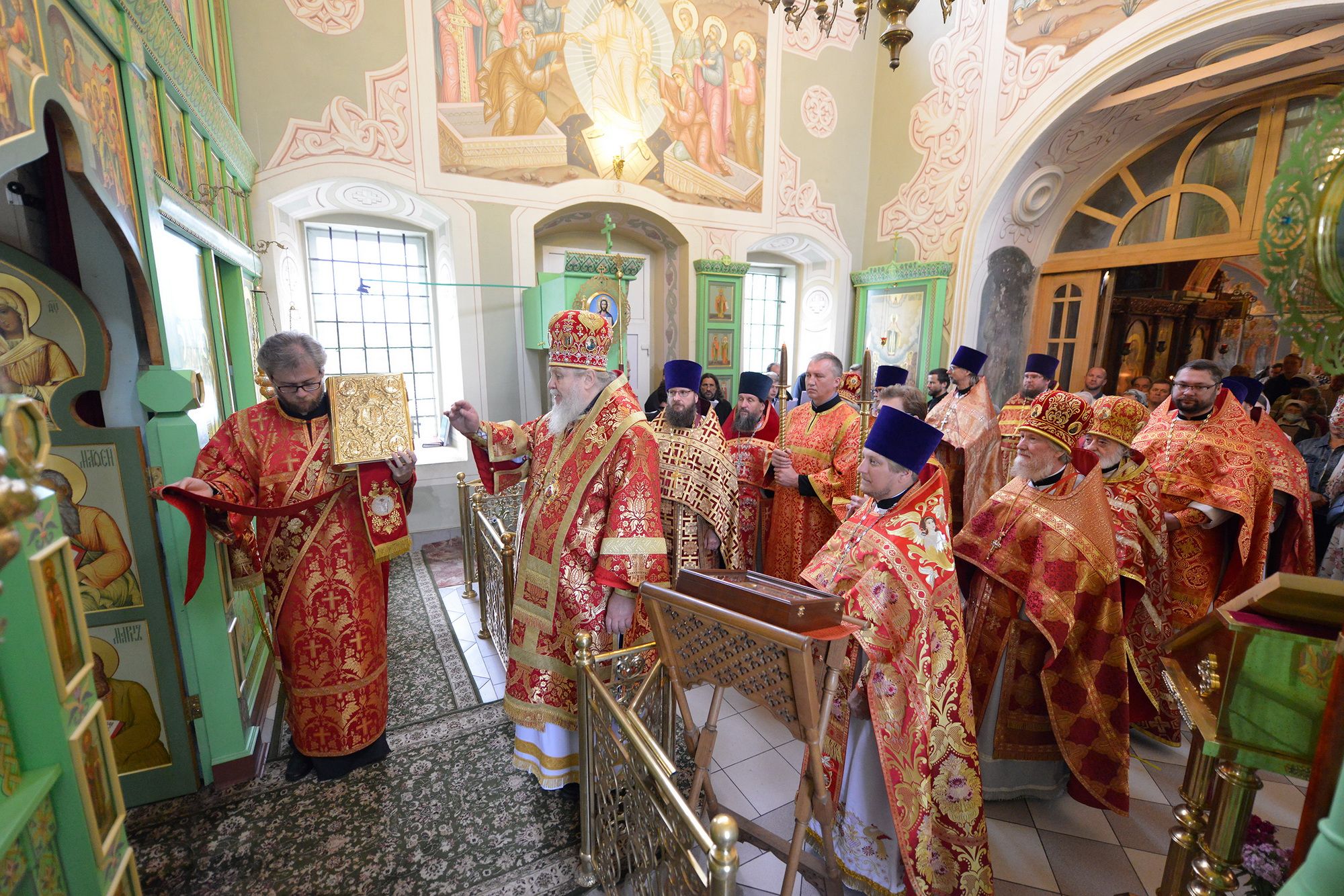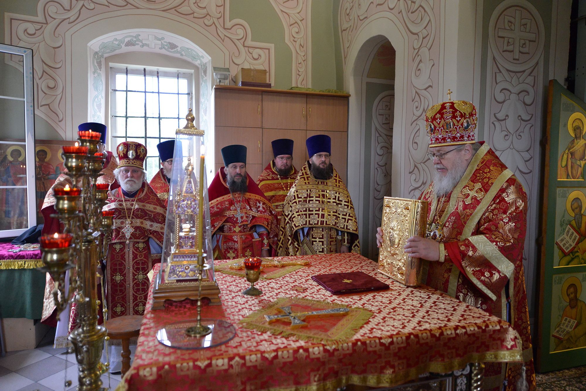 По окончании богослужения и славления новомученикам к Владыке со словами благодарности обратился настоятель храма протоиерей Сергий Лапкин и на память о соборном служении преподнес Его Преосвященству архиерейский требный комплект.