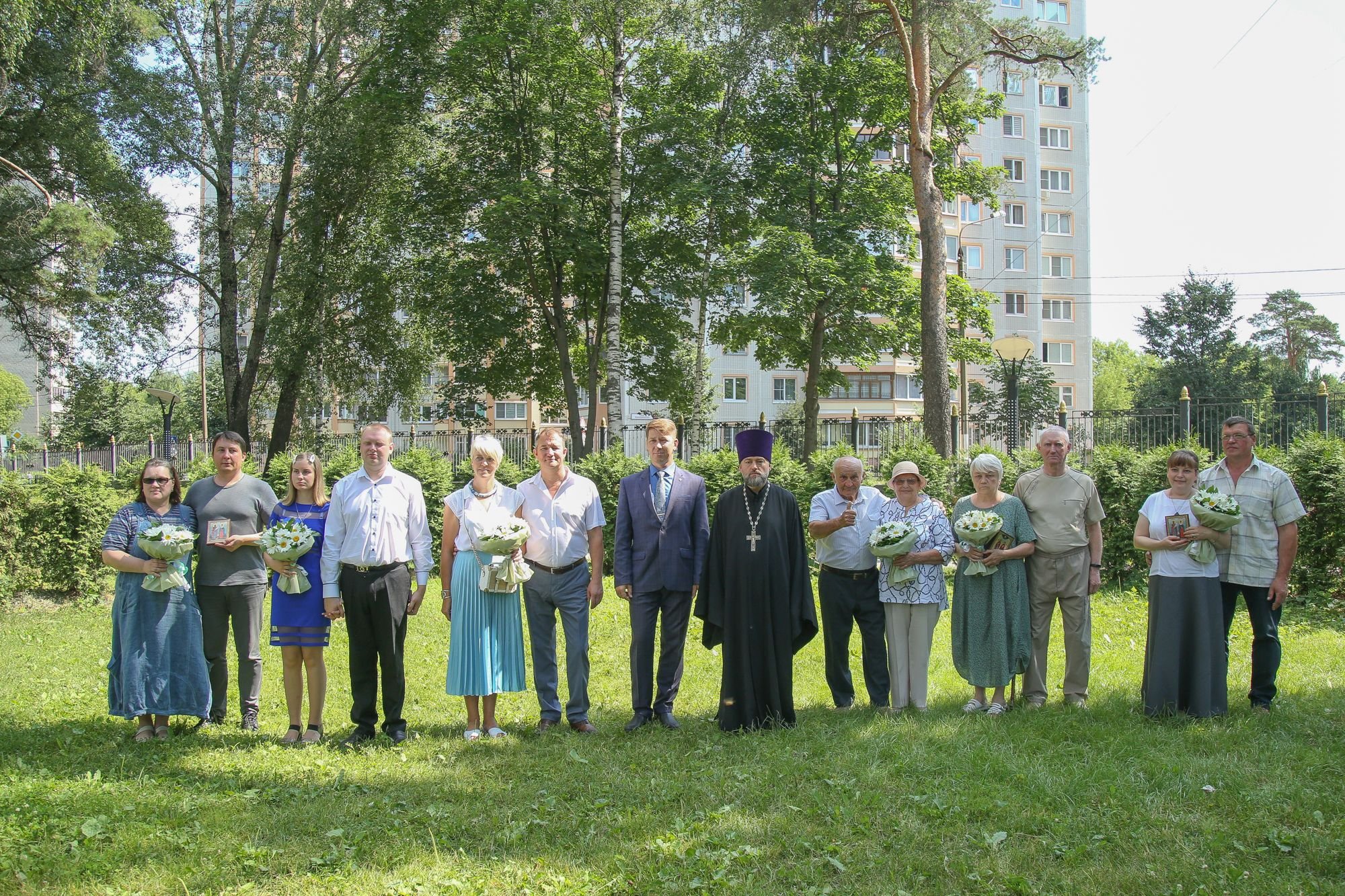 8 июля, в День семьи, любви и верности, в Ногинском парке чествовали молодые семьи и супругов-юбиляров. Заместитель благочинного Богородского церковного округа священник Сергий Макаров поздравил виновников торжества, пожелал мира, согласия, Божией помощи и подарил им иконы святых благоверных князя Петра и княгини Февронии Муромских.