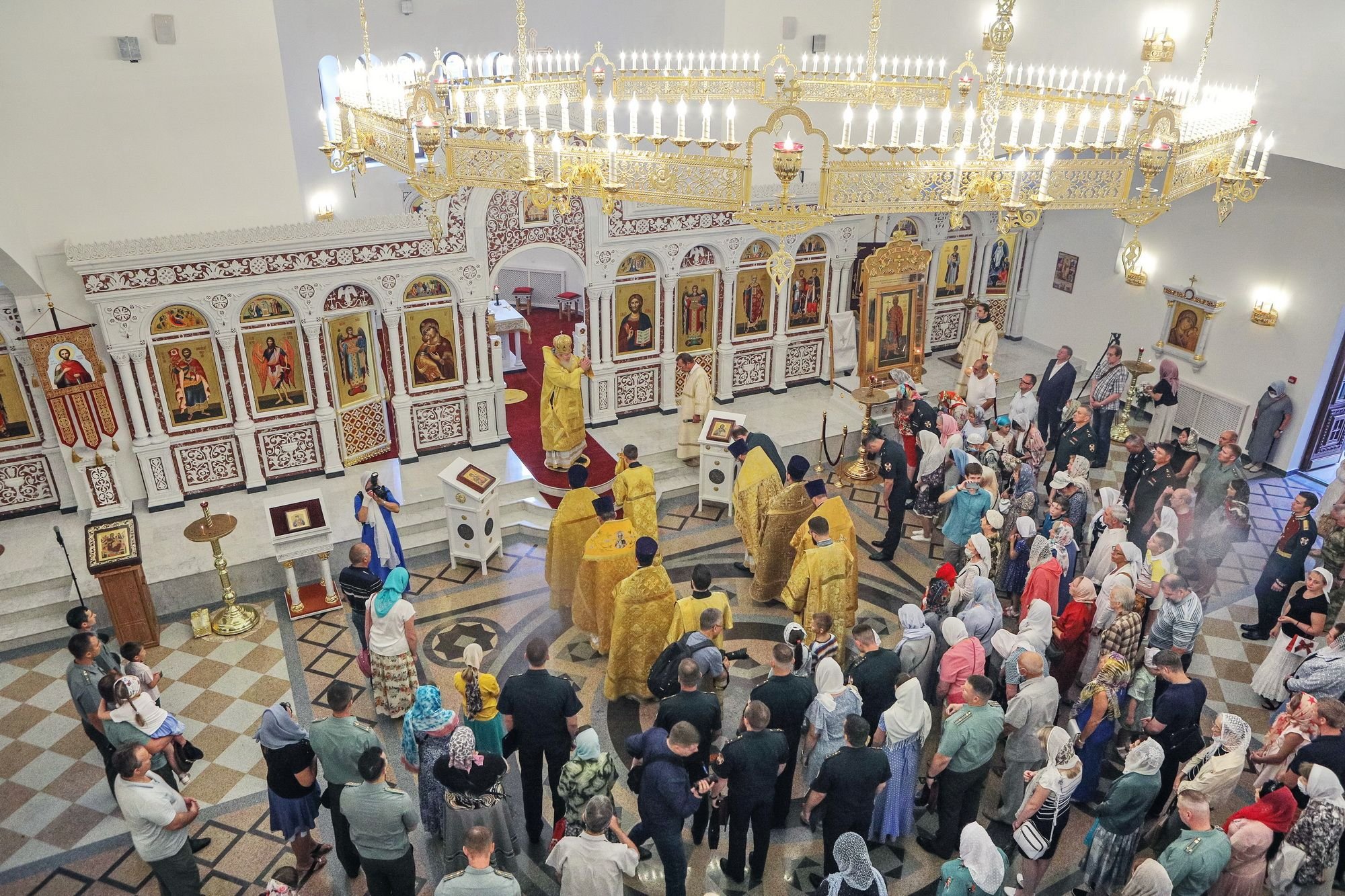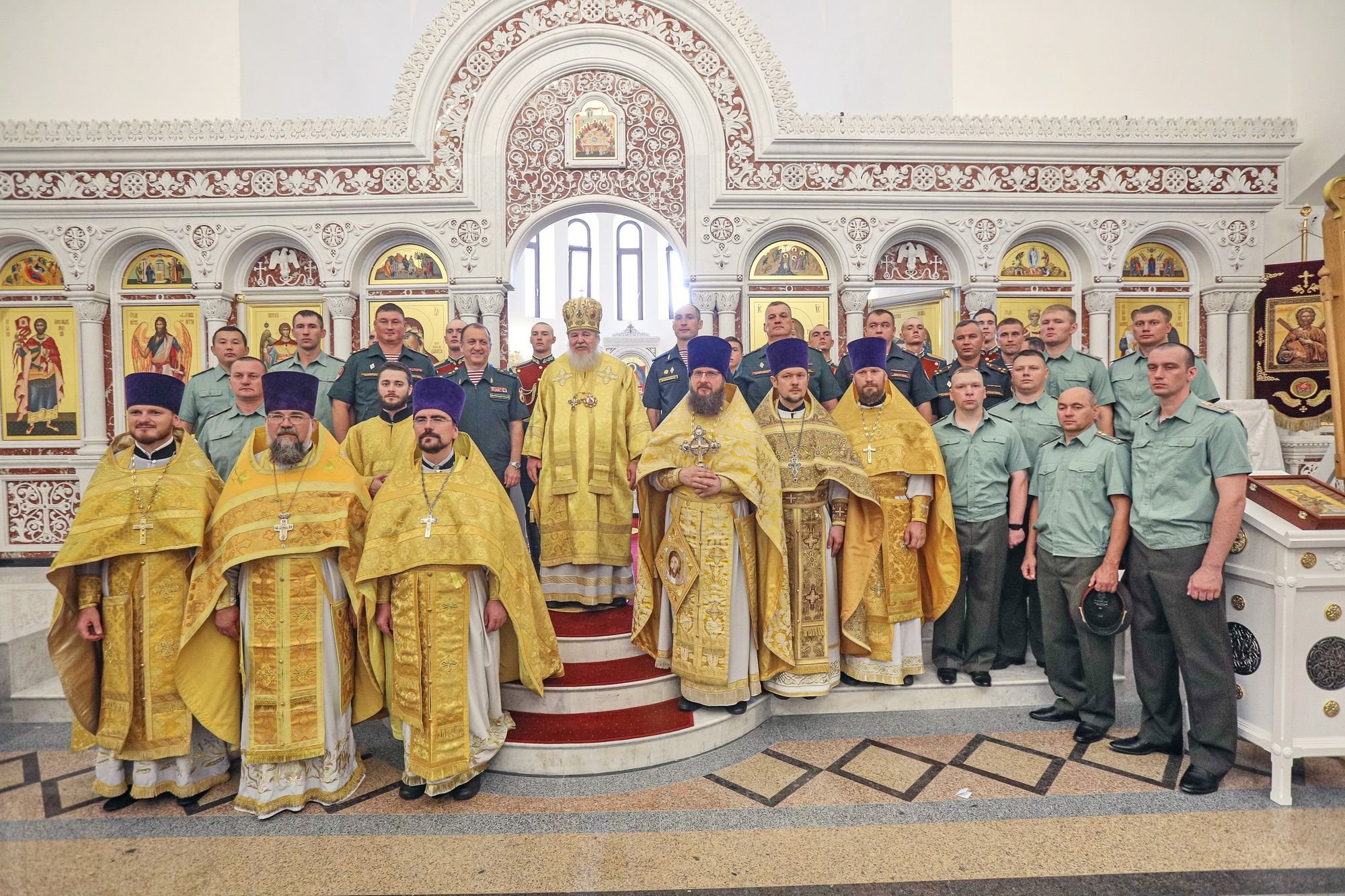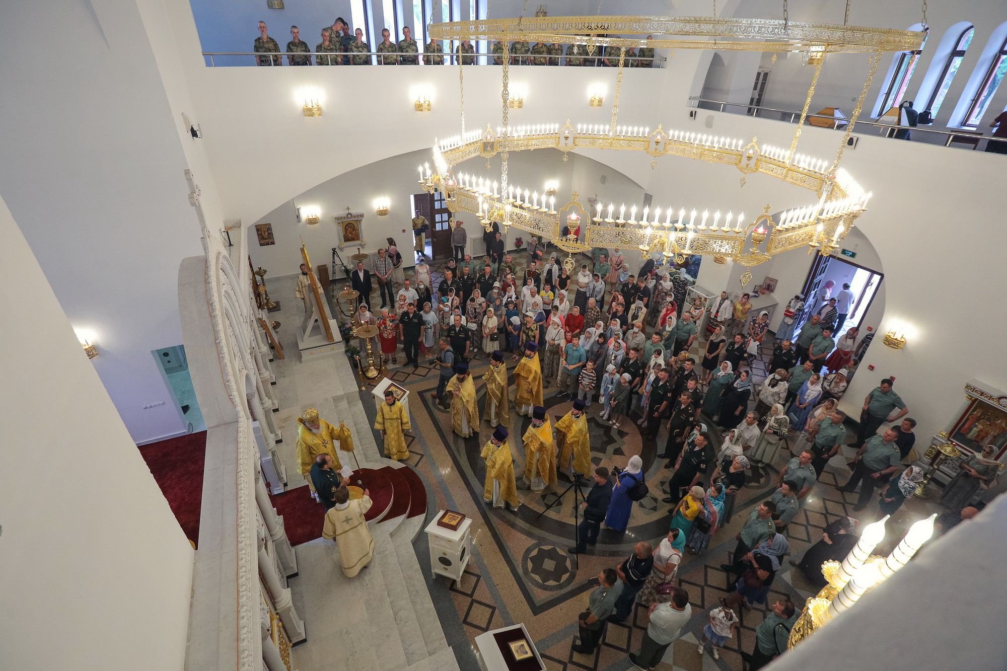 В день престольного праздника около 2 000 военнослужащих Росгвардии организованно посетили храм для молитвы перед иконой равноапостольного великого князя Владимира, главной иконой Федеральной службы войск национальной гвардии. Каждый из них получил в подарок православный молитвослов.