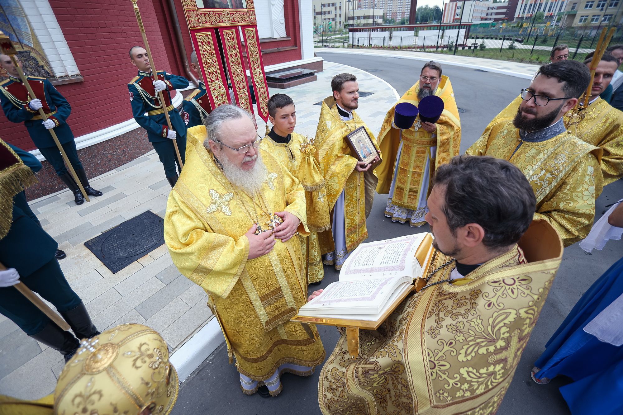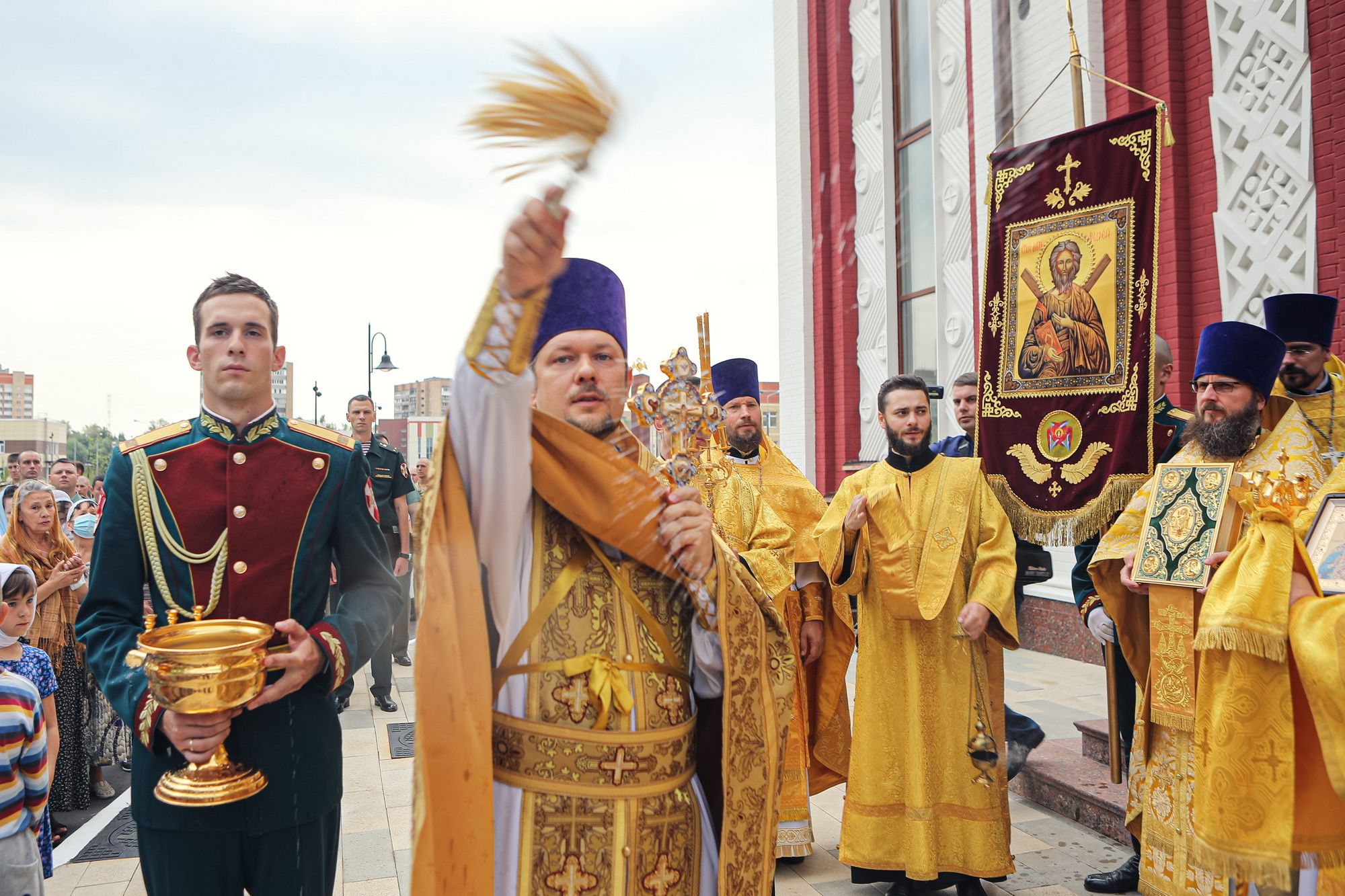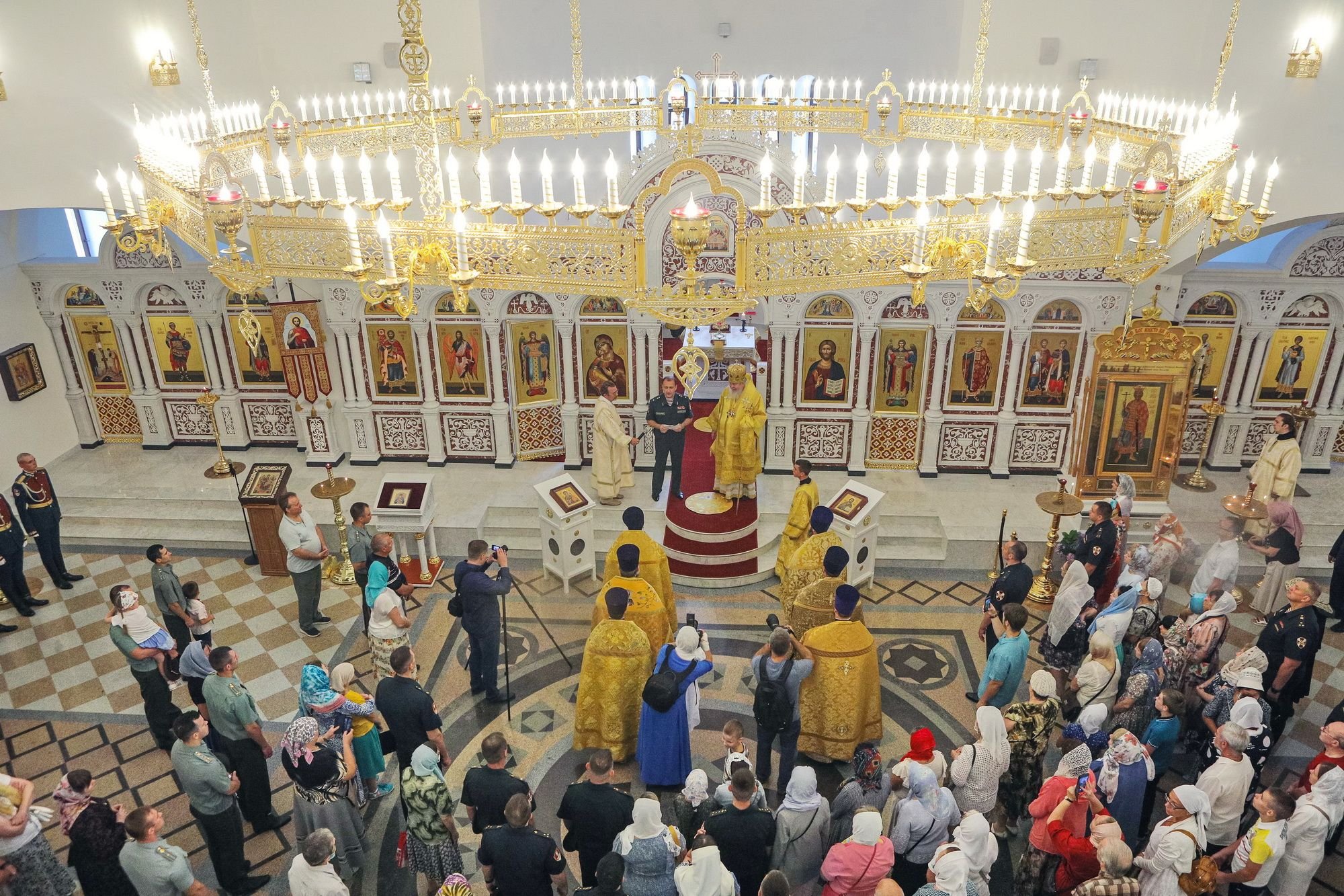 За богослужением молились временно исполняющий должность начальника Главного военно-политического управления генерал-майор юстиции Виктор Салатов, командир отдельной дивизии особого назначения имени Ф. Э. Дзержинского генерал-майор Николай Кузнецов, представители администрации города Балашихи, военнослужащие и сотрудники Росгвардии, члены их семей.