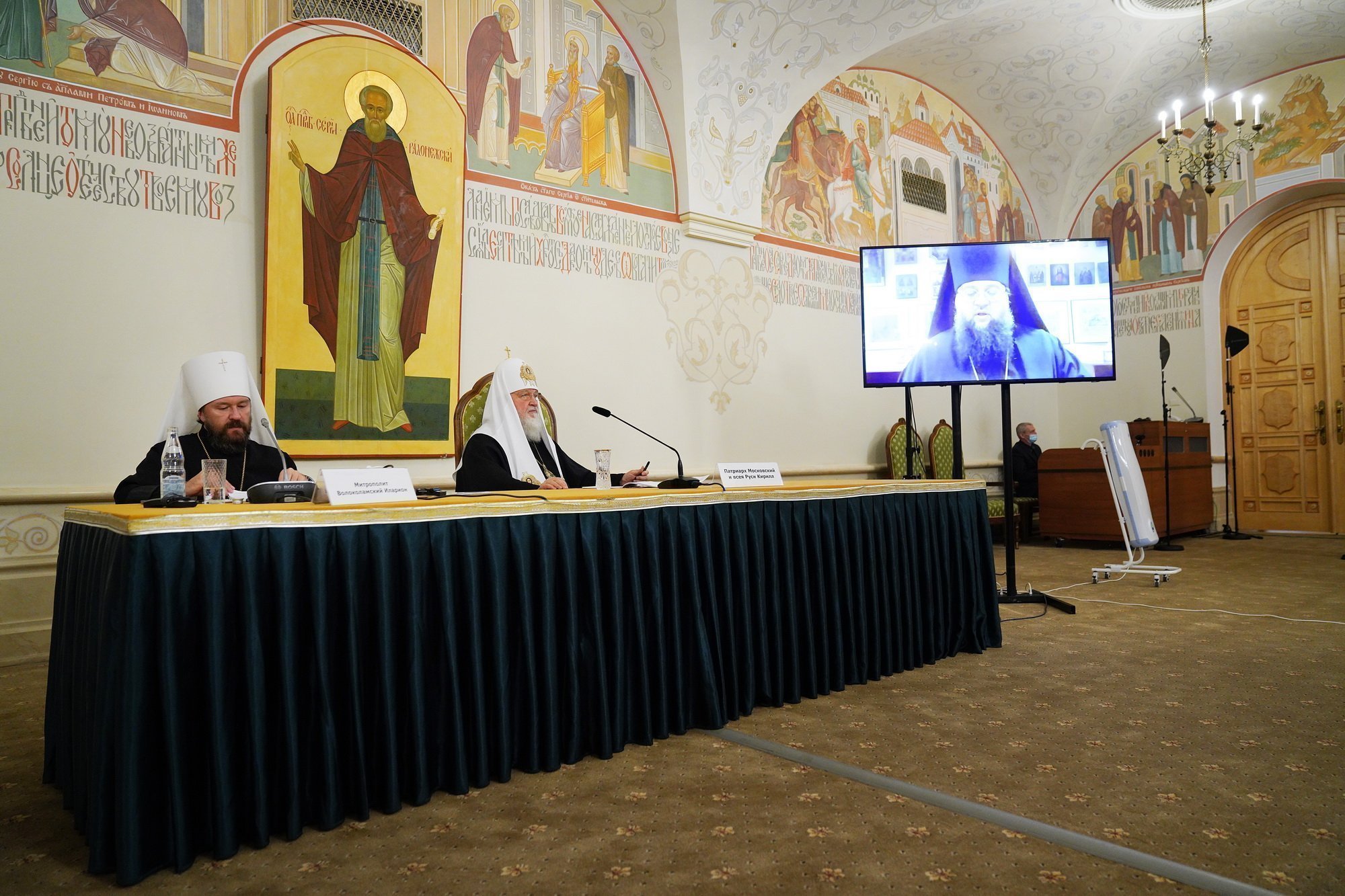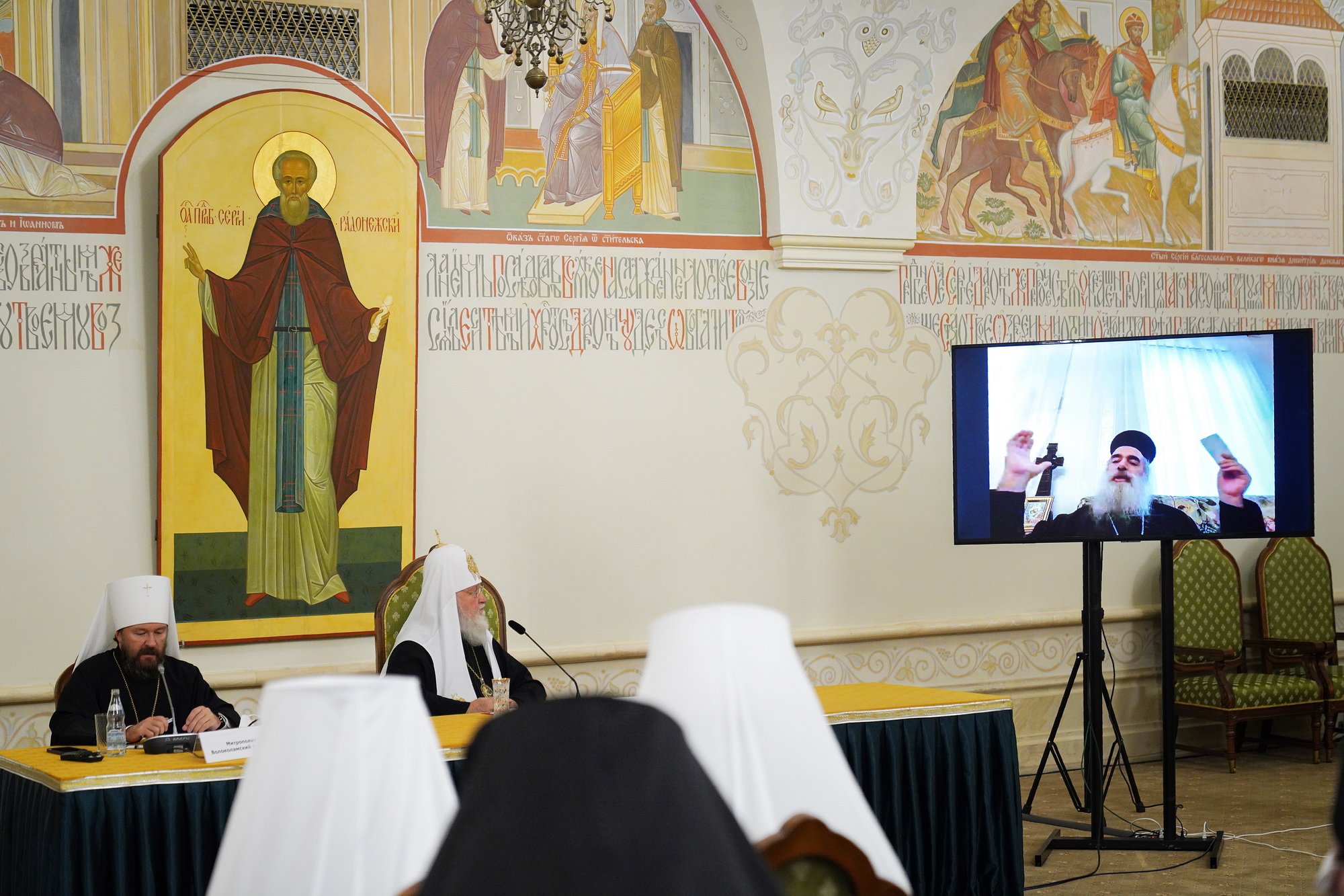 В дистанционном режиме принимают участие такие иерархи, как Патриарший экзарх всея Беларуси митрополит Минский и Заславский Вениамин, митрополит Рижский и всея Латвии Александр, митрополит Ахалкалакский и Кумурдойский Николай (Грузинская Православная Церковь), иерархи Кипрской Православной Церкви митрополит Киккский и Тиллирийский Никифор и митрополит Тамасосский и Оринийский Исаия, митрополит Белоцерковский и Богуславский Августин, митрополит Владимирский и Суздальский Тихон, митрополит Воронежский и Лискинский Сергий, митрополит Горийский и Атенский Андрей (Грузинская Православная Церковь), митрополит Екатеринбургский и Верхотурский Евгений, председатель Синодального отдела по монастырям и монашеству митрополит Каширский Феогност, митрополит Тамбовский и Рассказовский Феодосий, митрополит Нижегородский и Арзамасский Георгий, митрополит Саранский и Мордовский Зиновий, архиепископ Калининградский и Балтийский Серафим, архиепископ Пятигорский и Черкесский Феофилакт, управляющий Берлинско-Германской епархией архиепископ Рузский Тихон, архиепископ Севастийский Феодосий (Иерусалимская Православная Церковь), архиепископ Михаловско-Кошицкий Георгий (Православная Церковь Чешских земель и Словакии), епископ Бачский Ириней (Сербская Православная Церковь), ректор Киевских духовных академии и семинарии епископ Белогородский Сильвестр, епископ Бобруйский и Быховский Серафим, епископ Рыбинский и Романово-Борисоглебский Вениамин, председатель Синодального отдела по взаимодействию с Вооруженными силами и правоохранительными органами епископ Бронницкий Савватий, епископы Гатчинский и Лужский Митрофан, Городецкий и Ветлужский Августин, Гродненский и Волковысский Антоний, Сочинский и Туапсинский Герман.