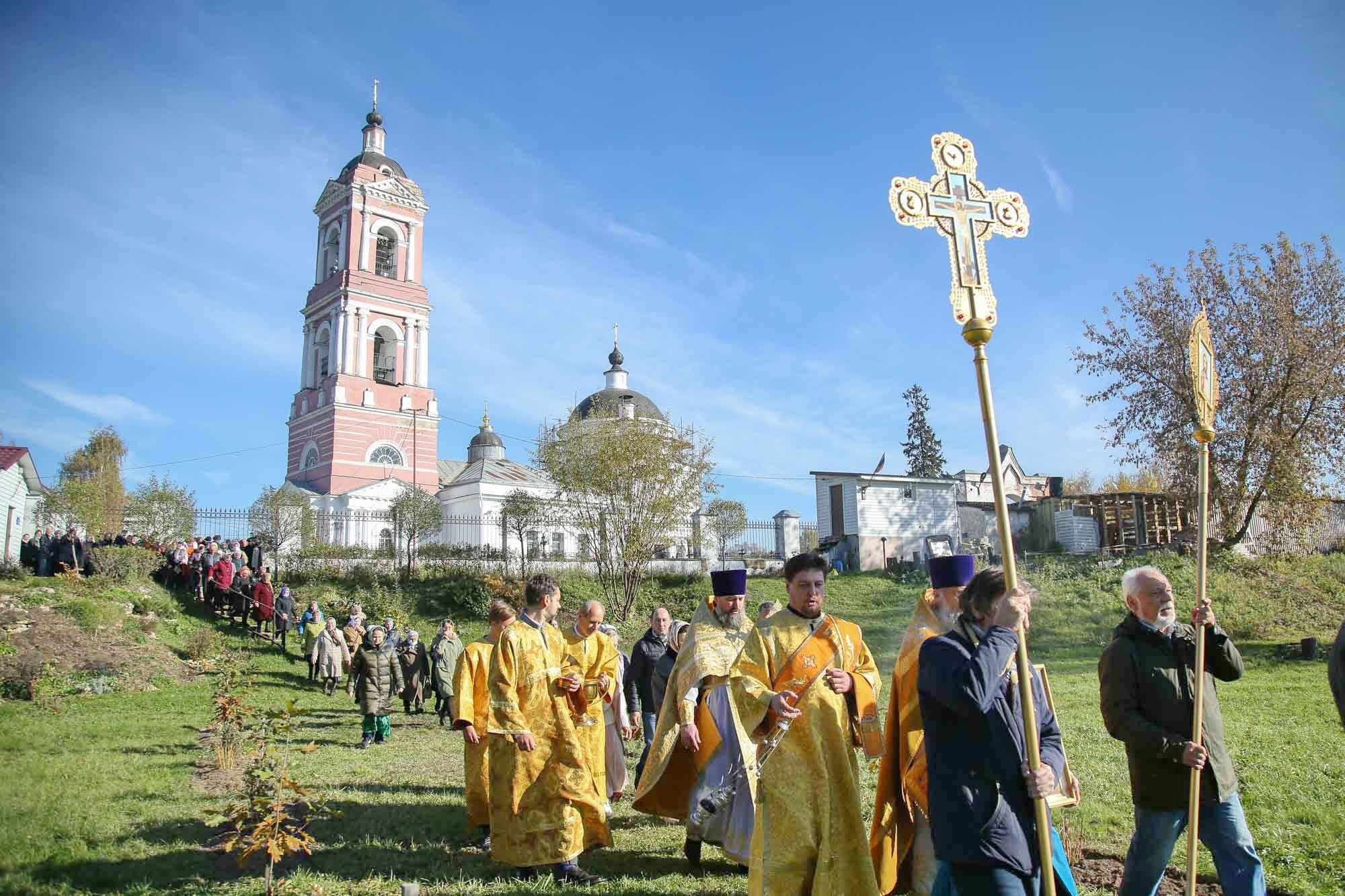 По окончании богослужения священнослужители с прихожанами прошли крестным ходом до мемориального камня в дубраве, которая была воссоздана приходом в память о настоятеле храма священномученике Алексии Сперанском, расстрелянном на Бутовском полигоне в декабре 1937 года. Было совершено освящение мемориального камня.