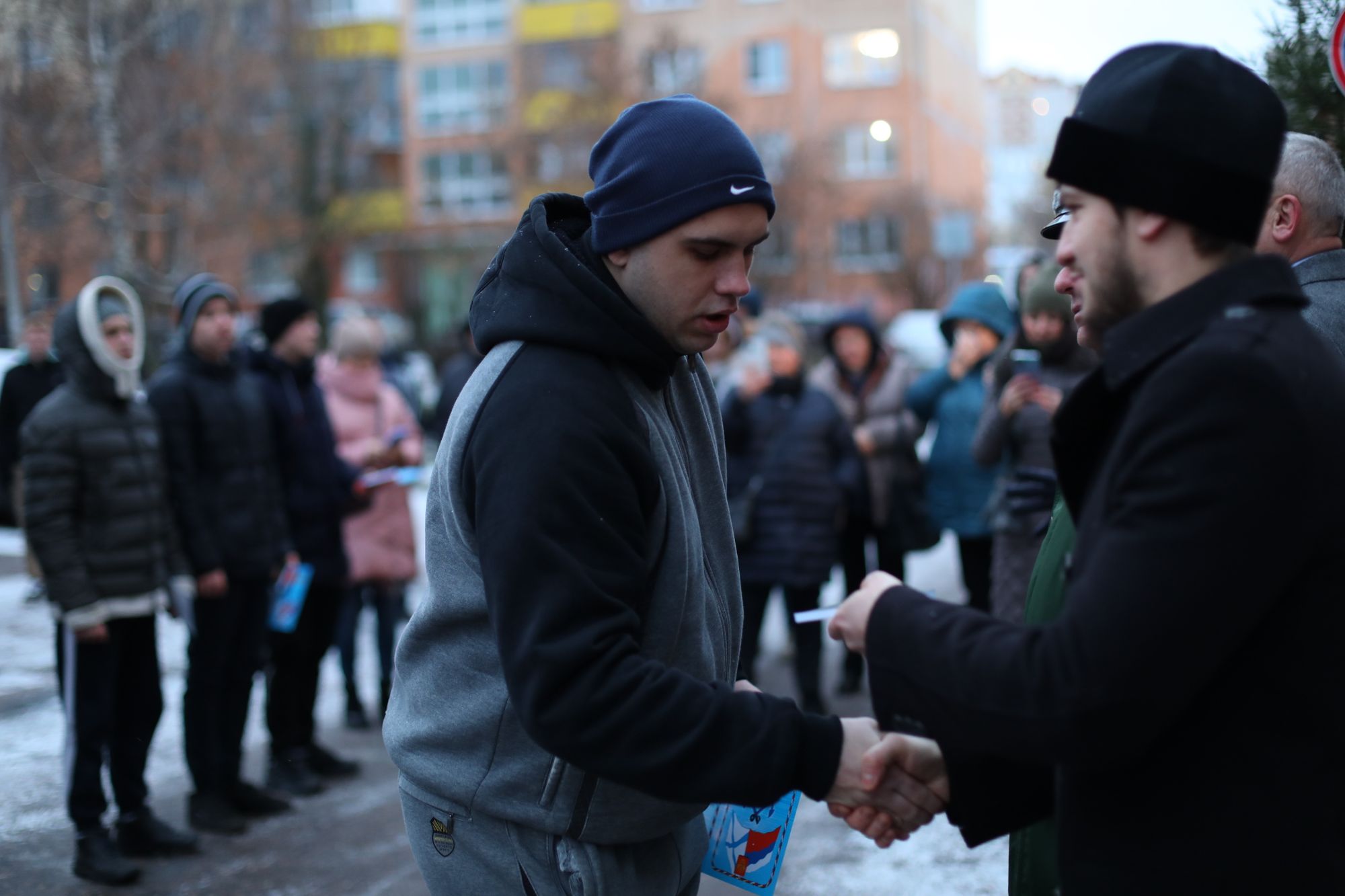 Отец Василий обратился к призывникам с пастырским словом и подарил им молитвословы и иконы.