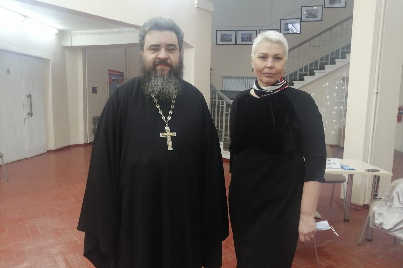 По окончании мероприятия отец Антоний обсудил вопросы взаимодействия и соработничества в общеобразовательных учебных заведениях на территории Ликино-Дулёвского благочиния с начальником управления образования Орехово-Зуевского городского округа О.М. Чихановой.