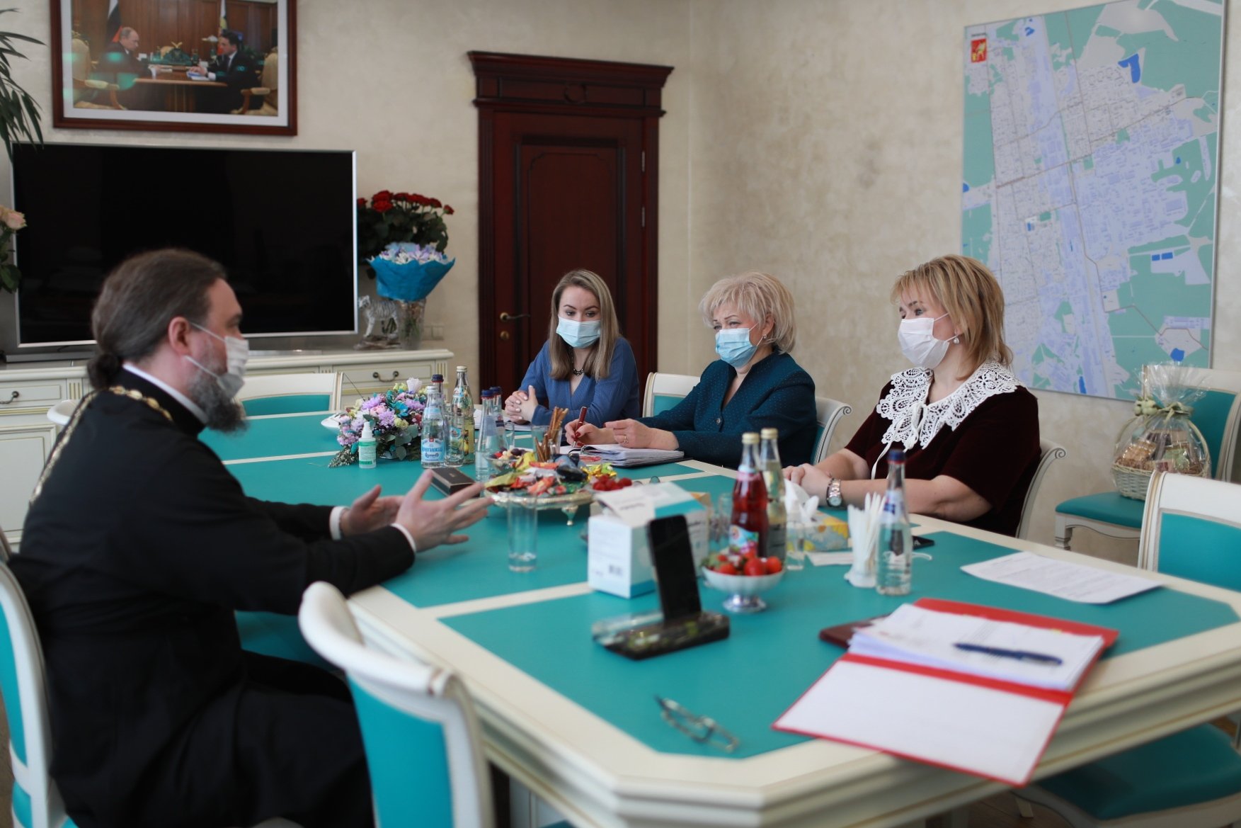 16 февраля благочинный Богородского церковного округа протоиерей Марк Ермолаев и глава городского округа Электросталь Инна Волкова провели рабочее совещание, на котором обсуждались перспективы развития взаимодействия, вопросы храмостроительства и предстоящий V хоровой пасхальный фестиваль «Наша Пасха».