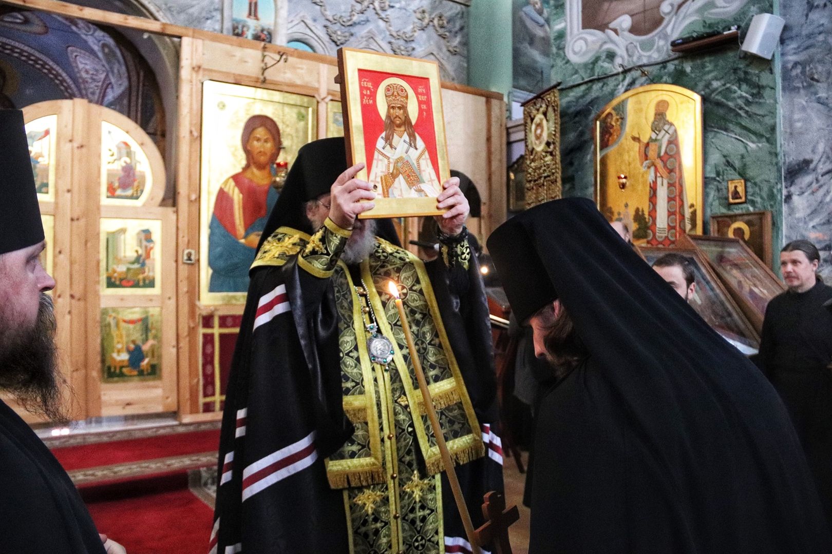 По окончании богослужения Его Преосвященство обратился со словом назидания к новостриженному монаху и в благословение вручил ему образ его Небесного покровителя.