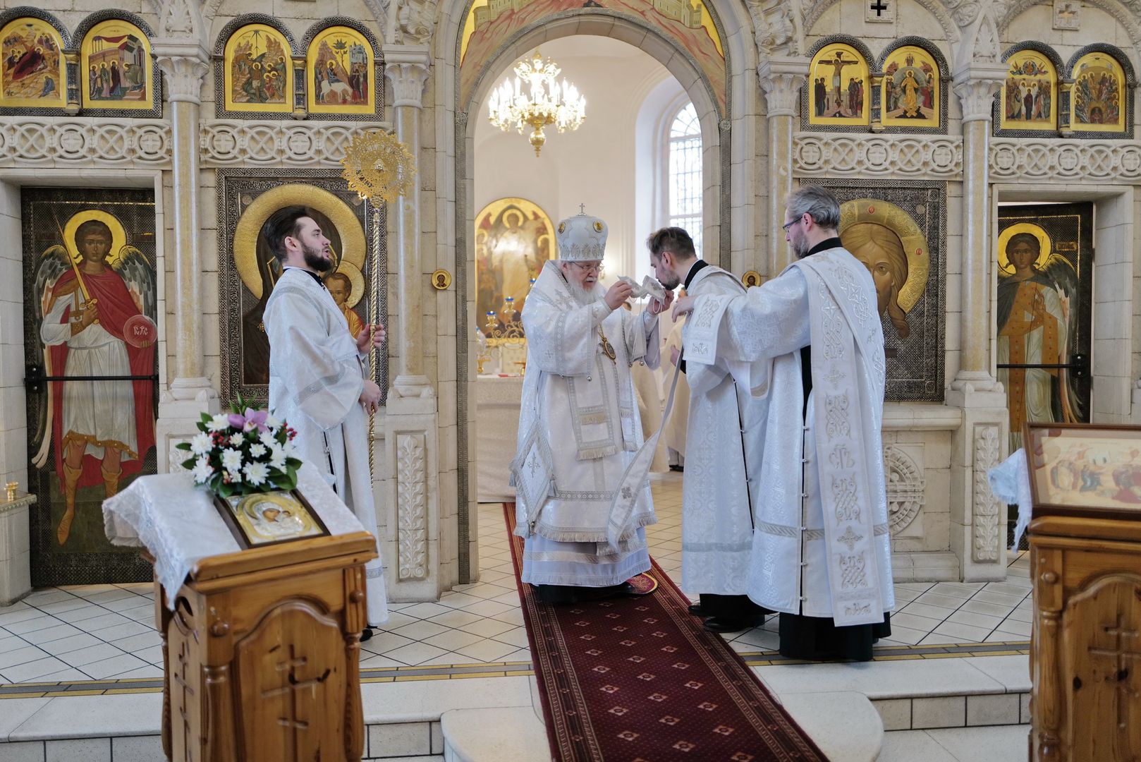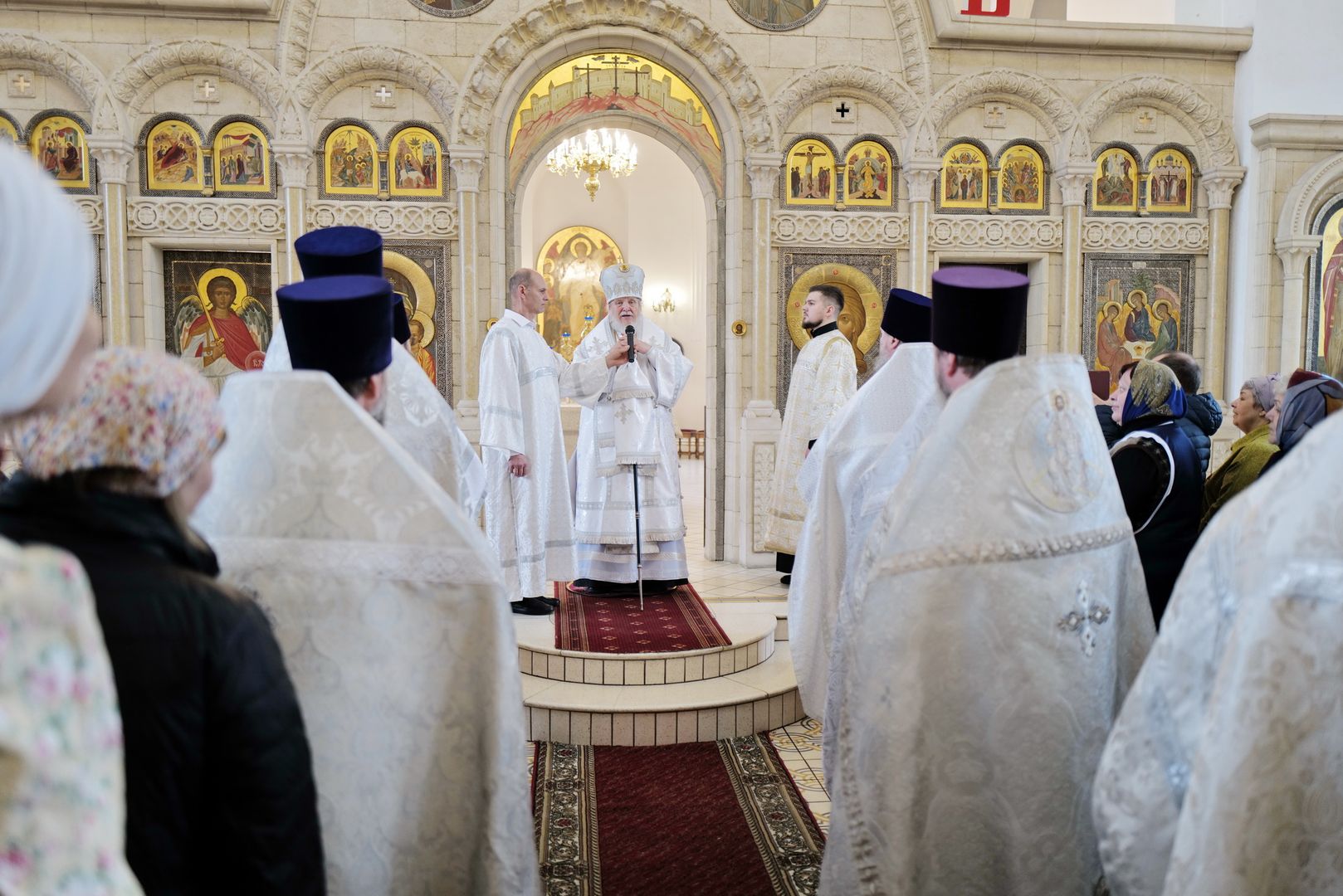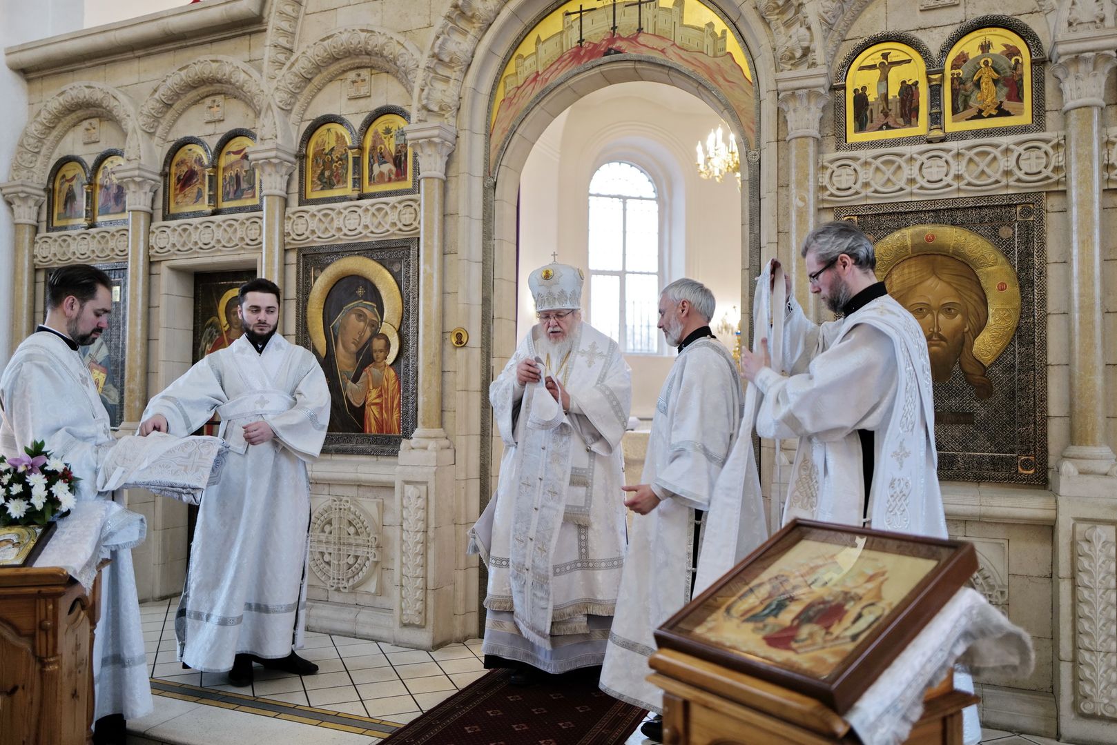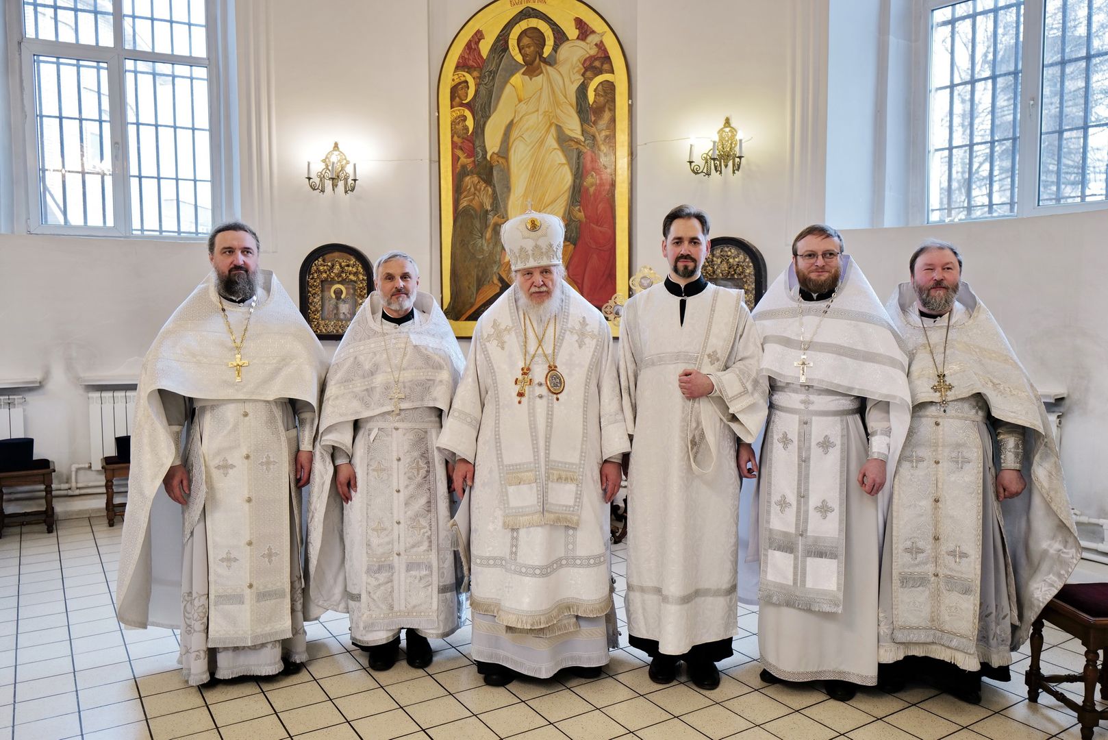По окончании Литургии отец настоятель обратился к Владыке Николаю с приветствием, поблагодарил за совершённое богослужение и преподнёс ему книгу о Третьяковской галерее.