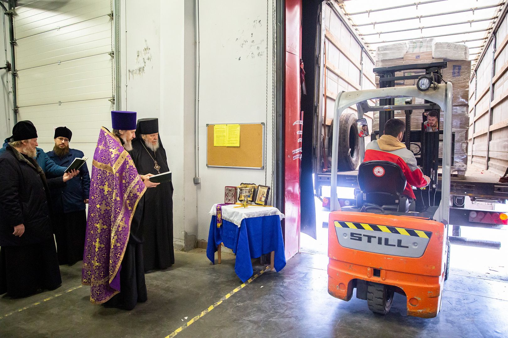 Перед отправкой груза председатель Епархиального отдела по благотворительности и социальному служению протоиерей Алексий Никонов совершил молебен, по завершении которого Владыка Николай поблагодарил всех принявших участие в этом благом деле и преподал им архипастырское благословение.