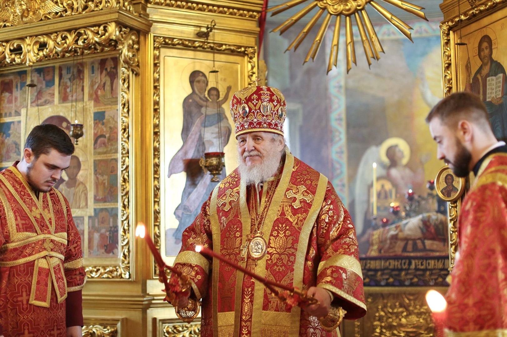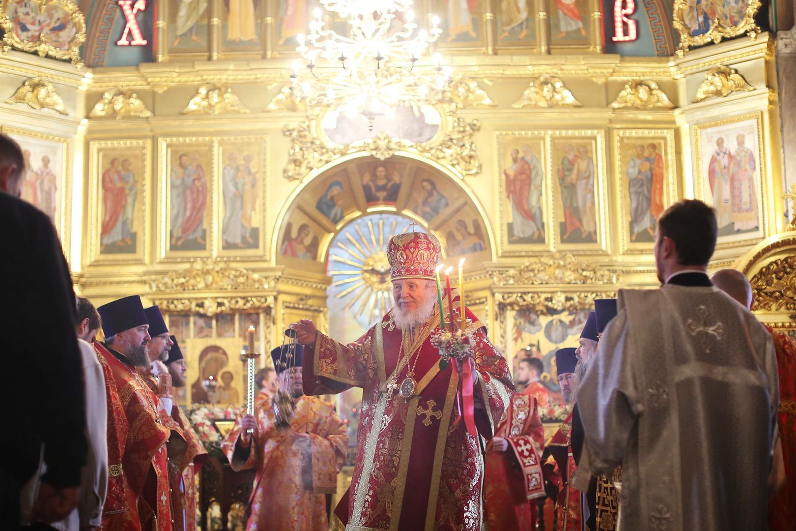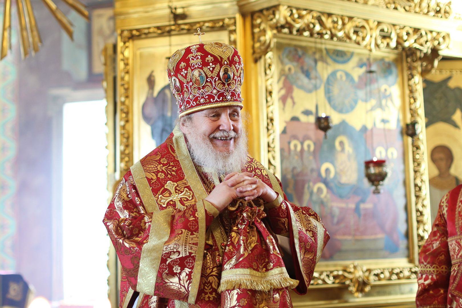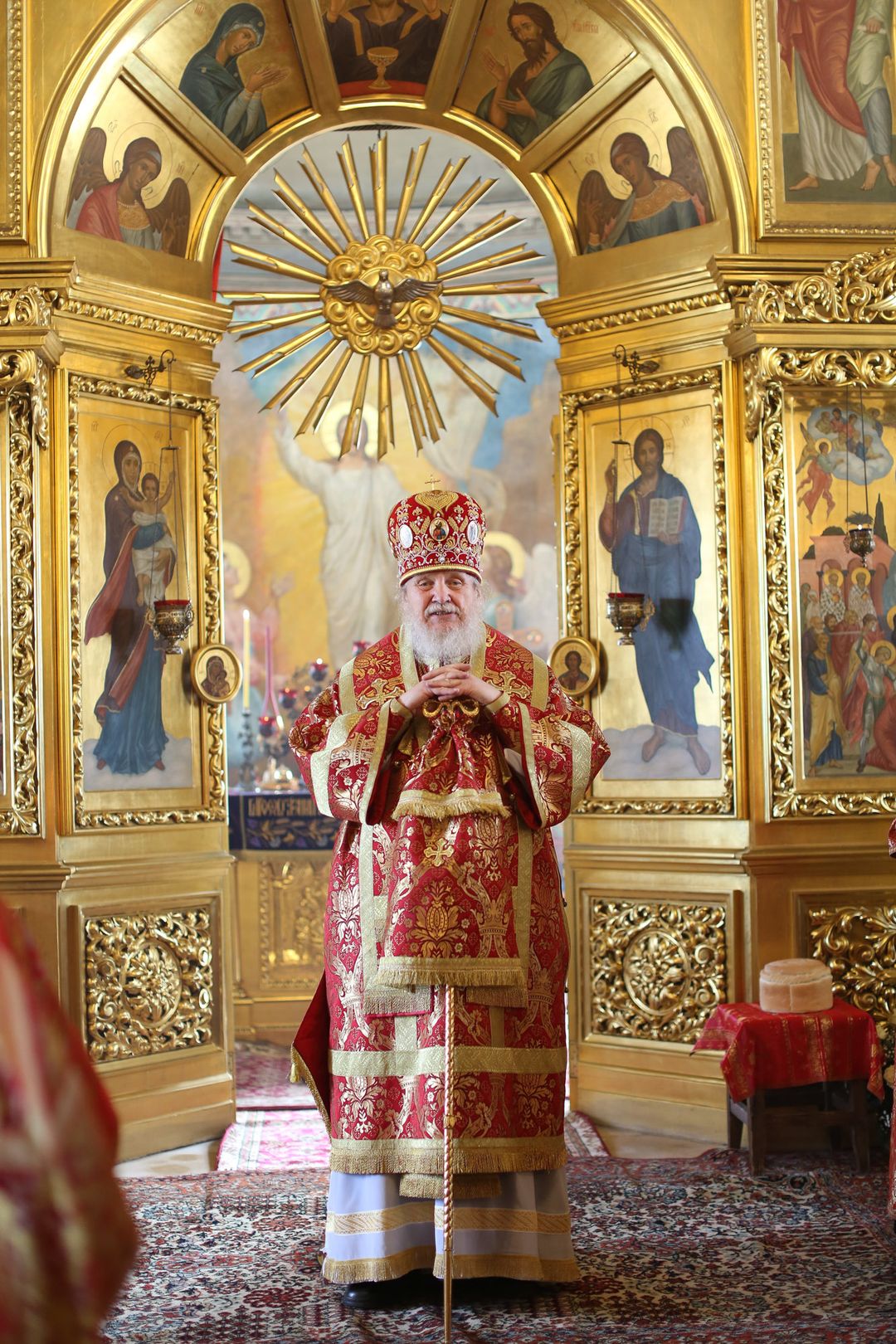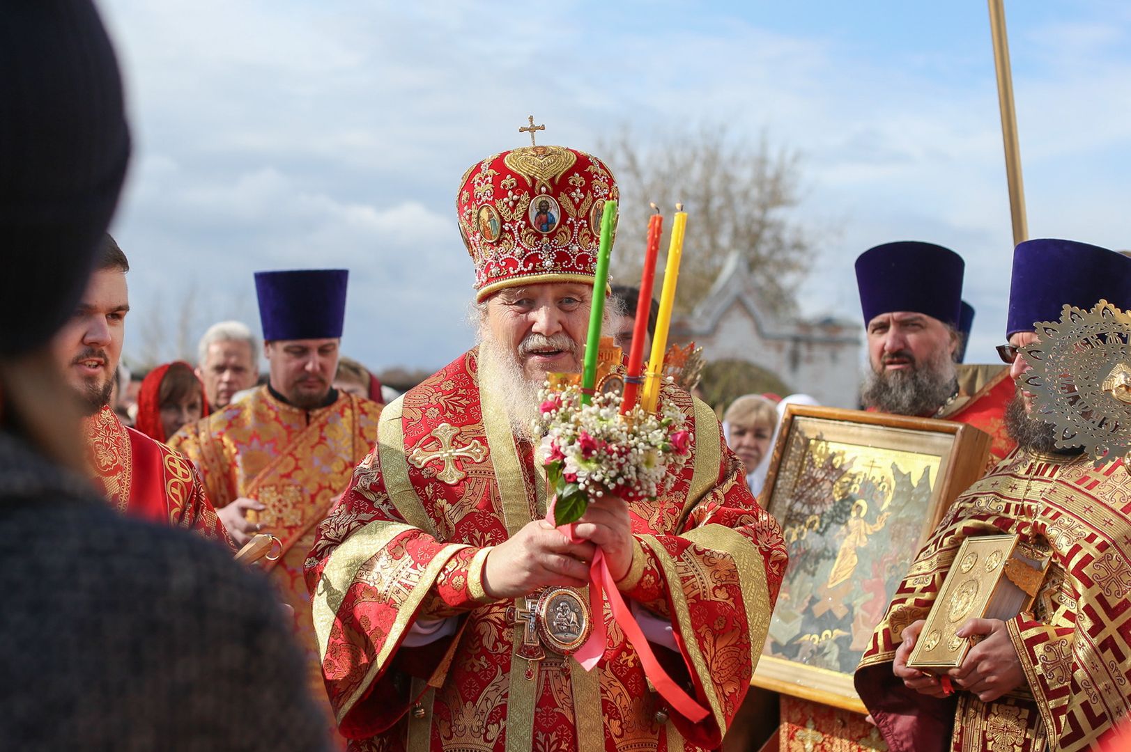 По окончании уставного крестного хода протоиерей Сергий Уваркин поблагодарил Владыку Николая за совершенное богослужение и преподнес ему Евангелие и трёхсвечник.