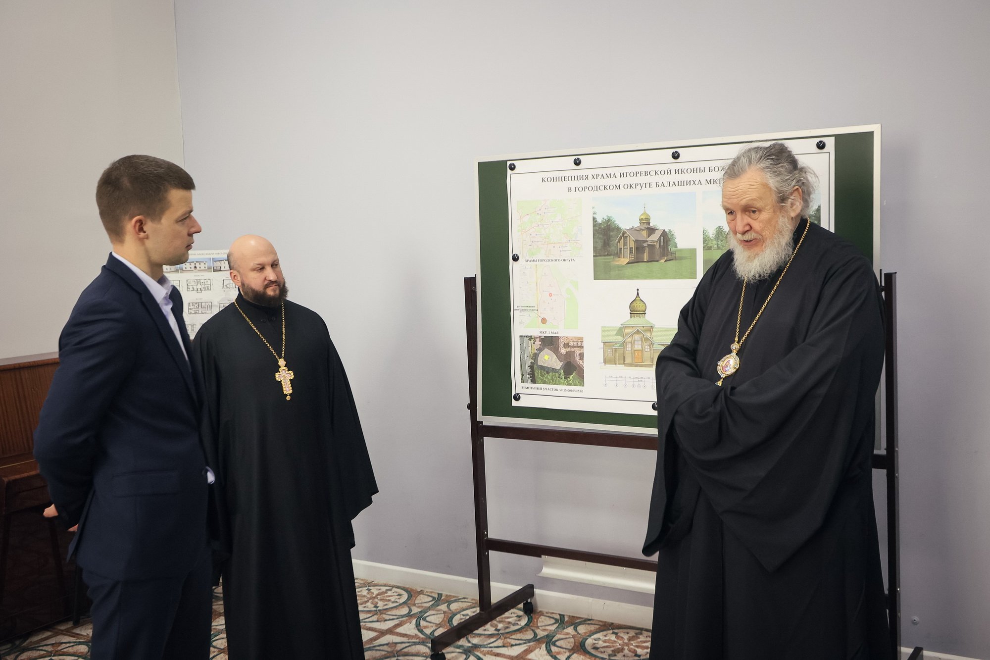 Во встрече также приняли участие заместитель главы администрации городского округа Балашиха Ф. А. Науменко, секретарь Балашихинского епархиального управления протоиерей Алексий Михаленя, благочинный церквей Балашихинского округа священник Михаил Конюхов, председатель Епархиального отдела по реставрации и строительству протоиерей Андрей Коробков и эконом Балашихинского епархиального управления протоиерей Александр Ивлев.